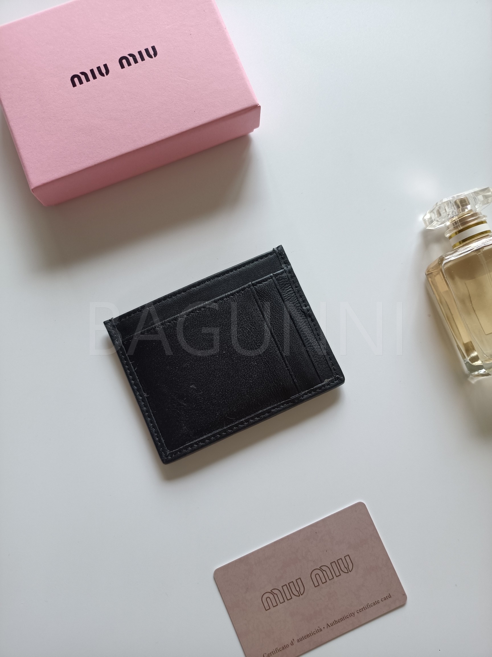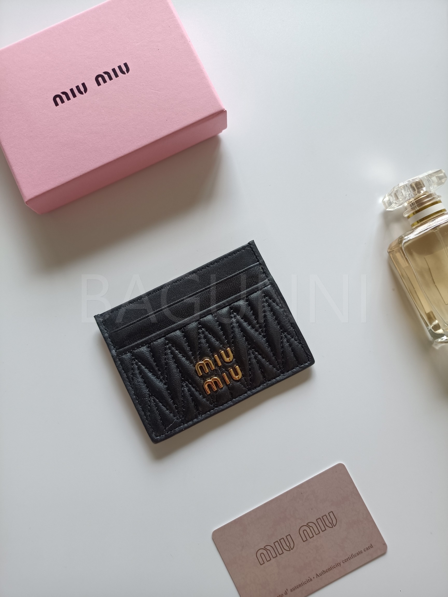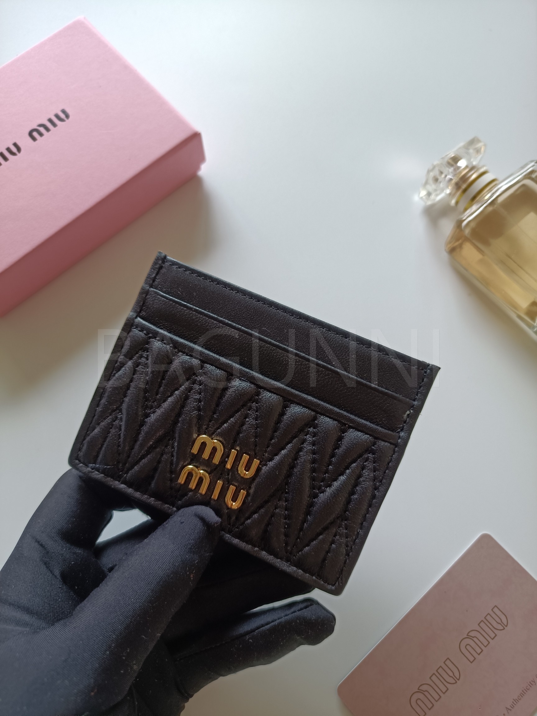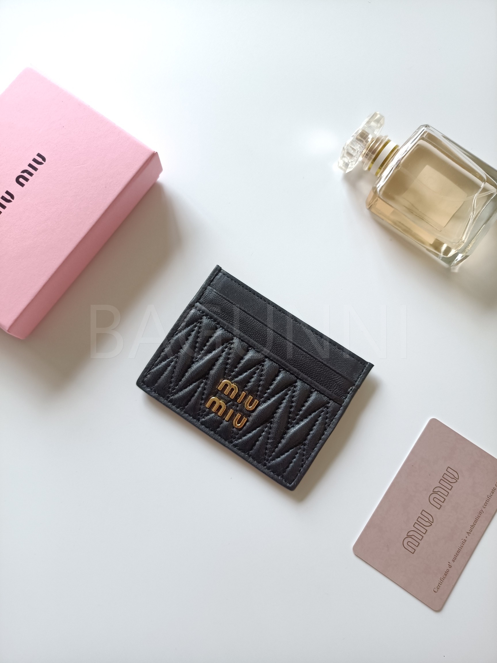 마테라쎄 가죽의 질감이 돋보이는 미우미우 마테라쎄 카드지갑입니다.