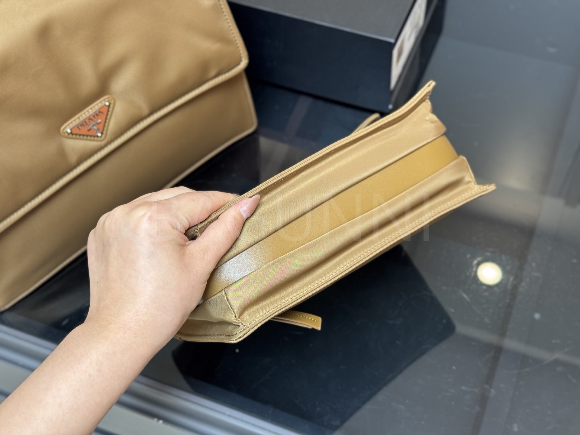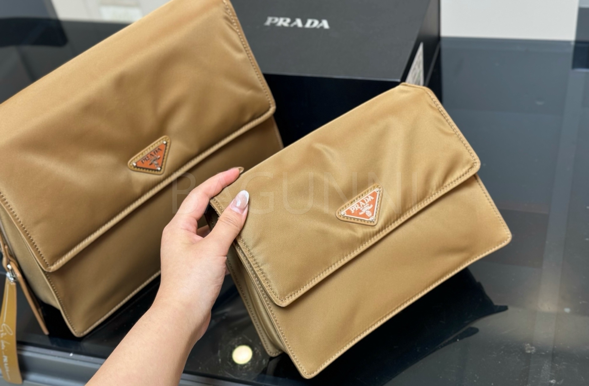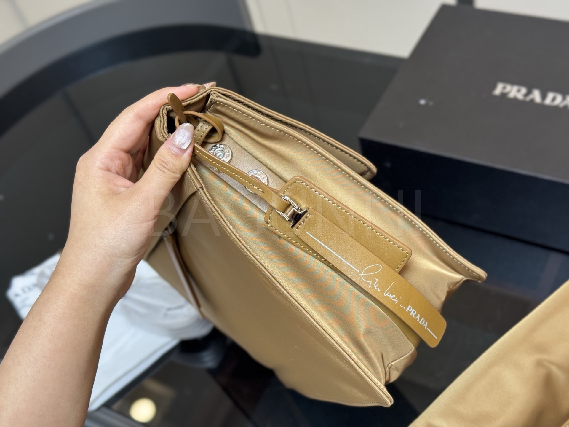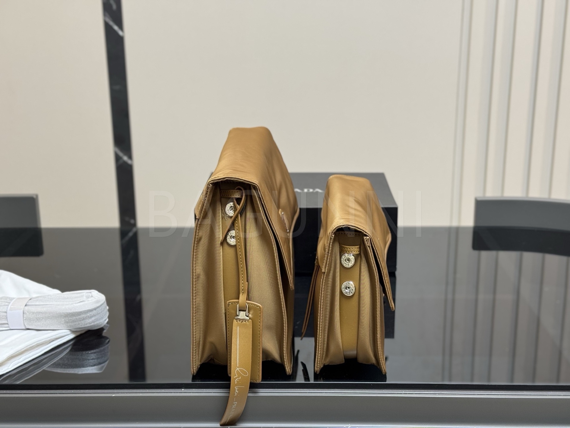 프라다 메신저백은 세련된 실루엣을 담은 아이템입니다.