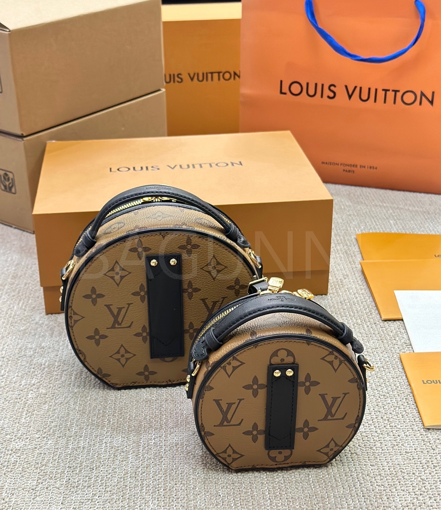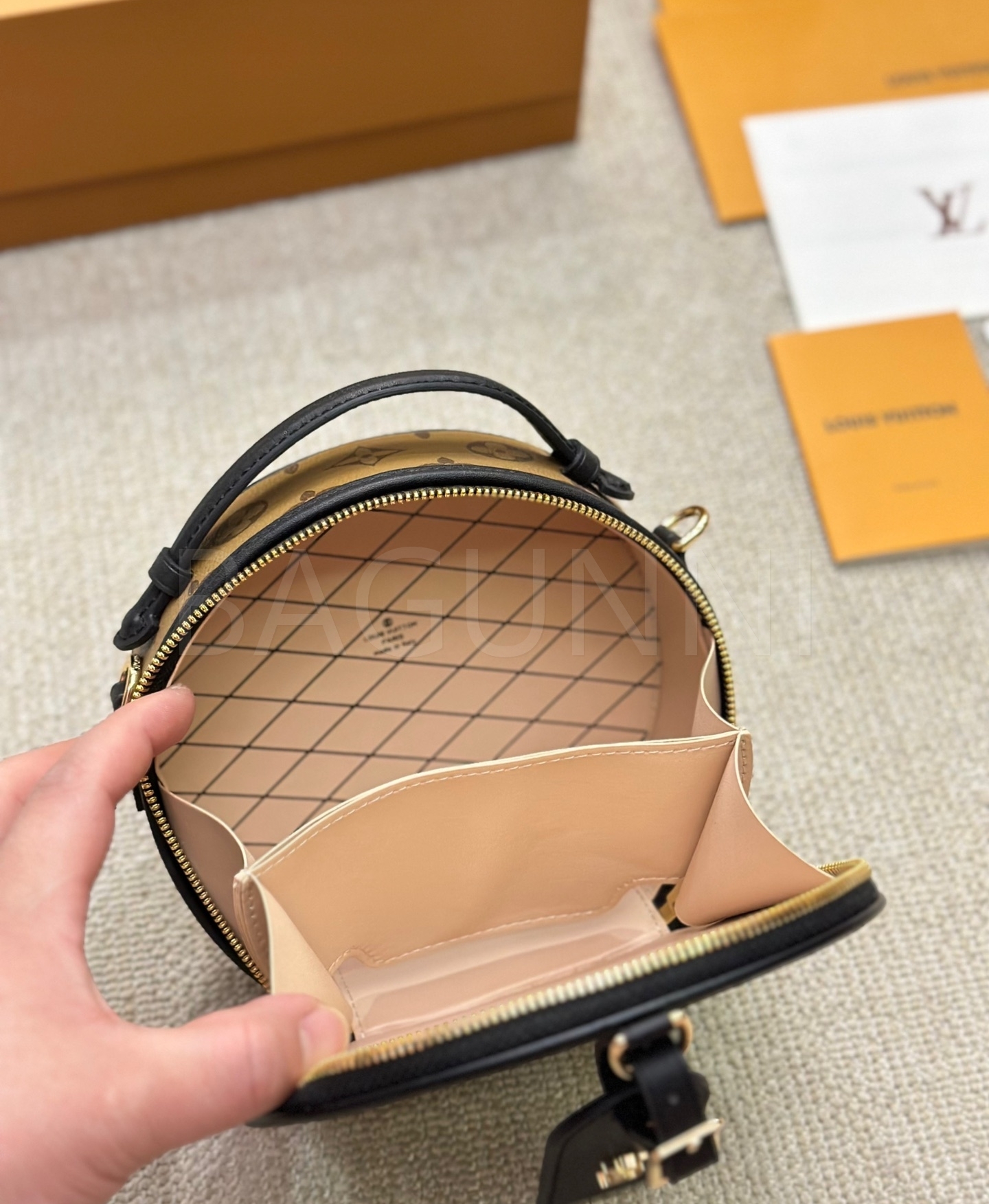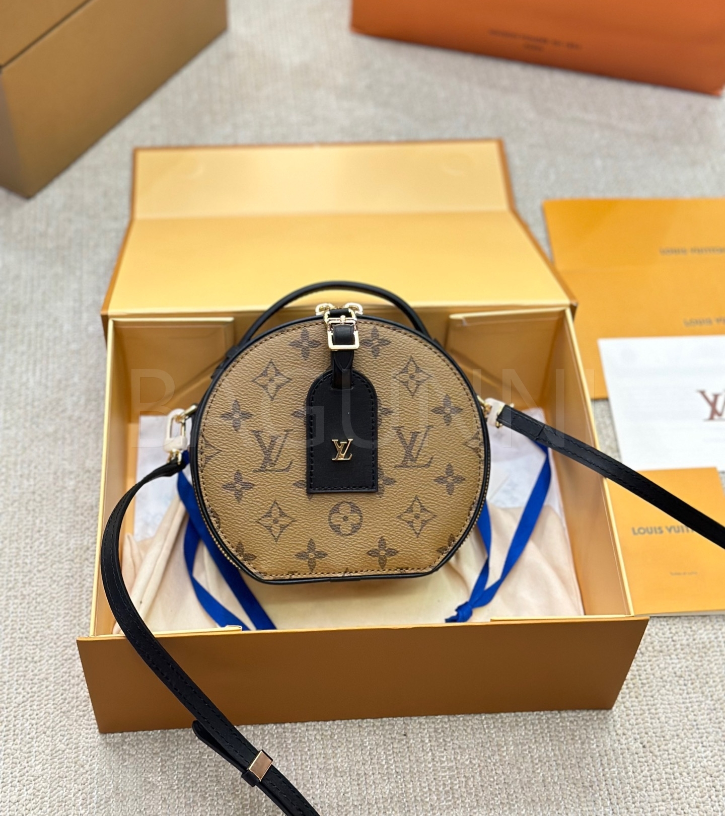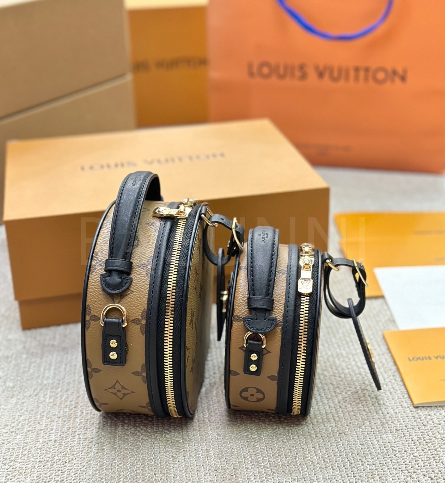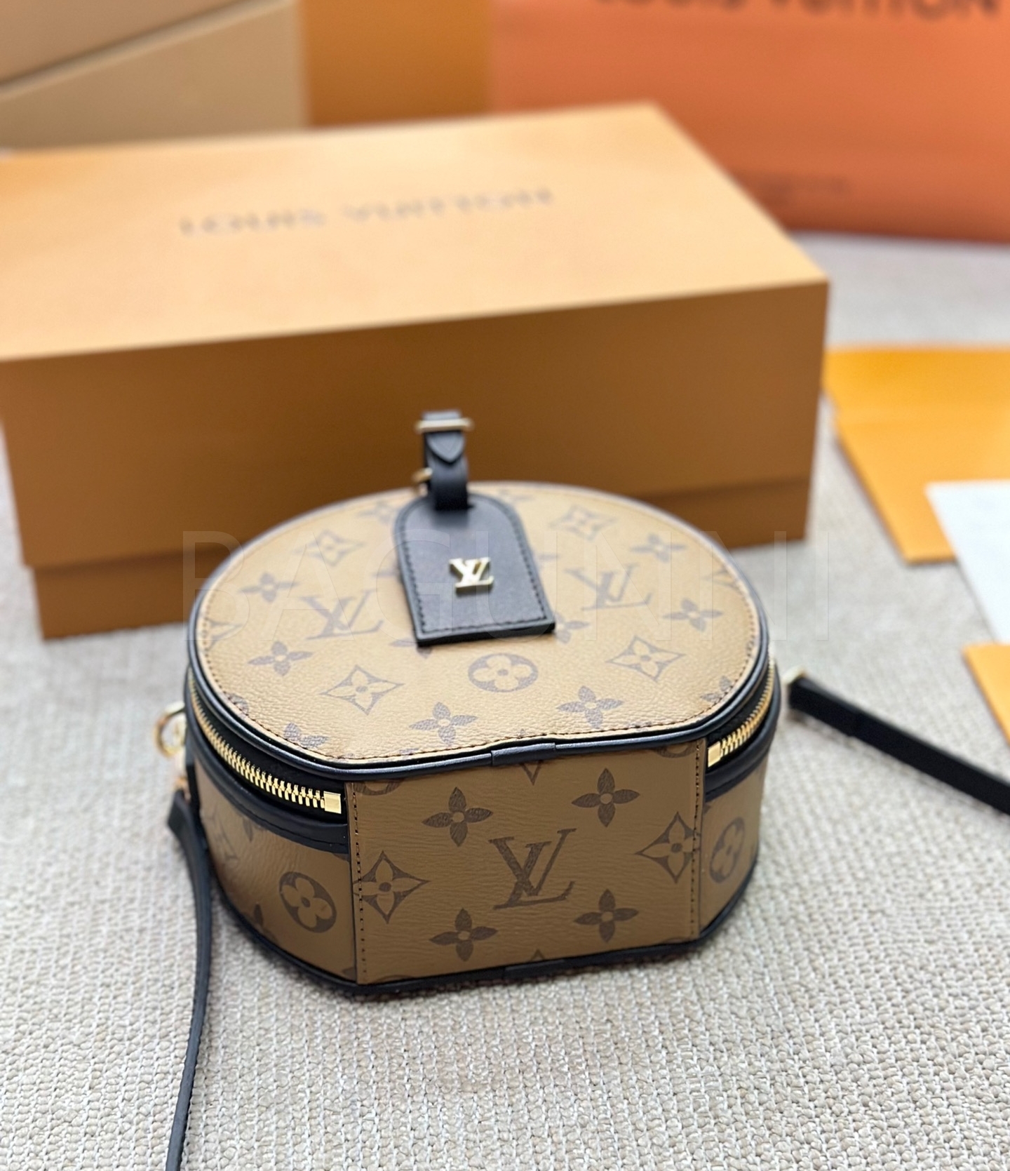 클래식한 캔버스 무드가 돋보이는 루이비통 원형 숄더백입니다.