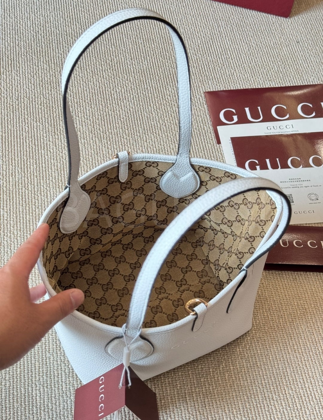구찌 토티시마 토트백입니다. 가죽 특유의 질감이 자연스럽게 살아 있으며 브랜드 특유의 분위기를 편하게 즐기기 좋습니다.