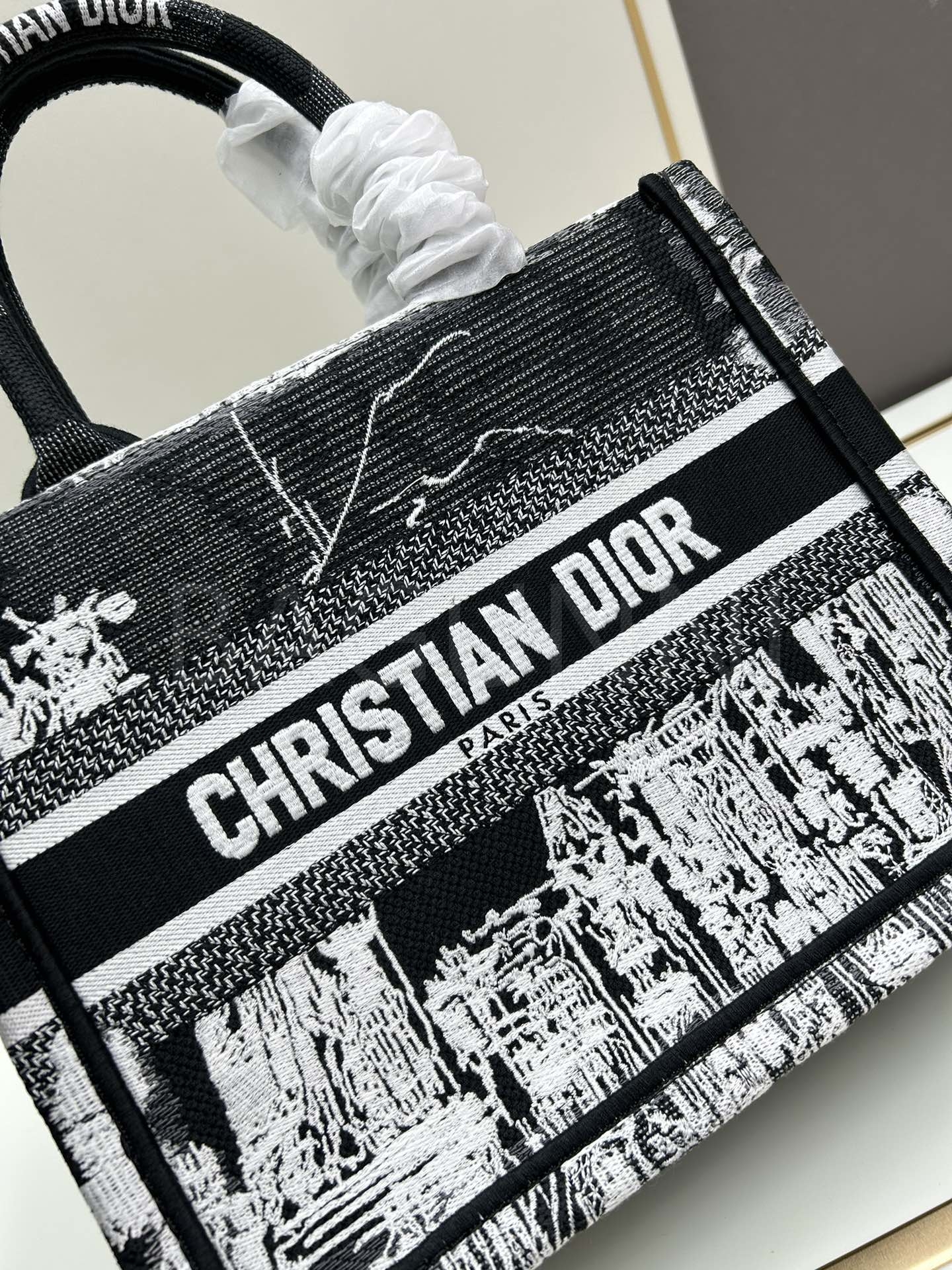 디올 북 토트입니다. 블루 톤이 어우러져 브랜드 특유의 분위기를 편하게 즐기기 좋습니다.
