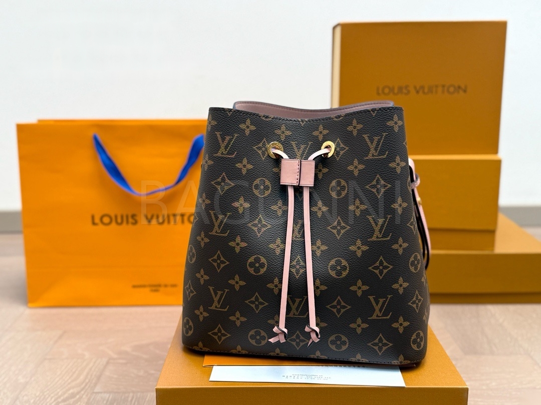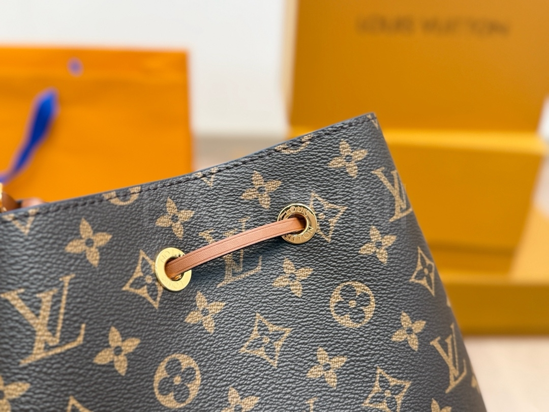 클래식한 캔버스 무드가 돋보이는 루이비통 노에 버킷 백입니다.
