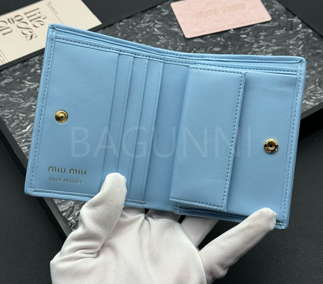 미우미우 마테라쎄 반지갑 특유의 분위기가 자연스럽게 드러나는 디자인입니다.