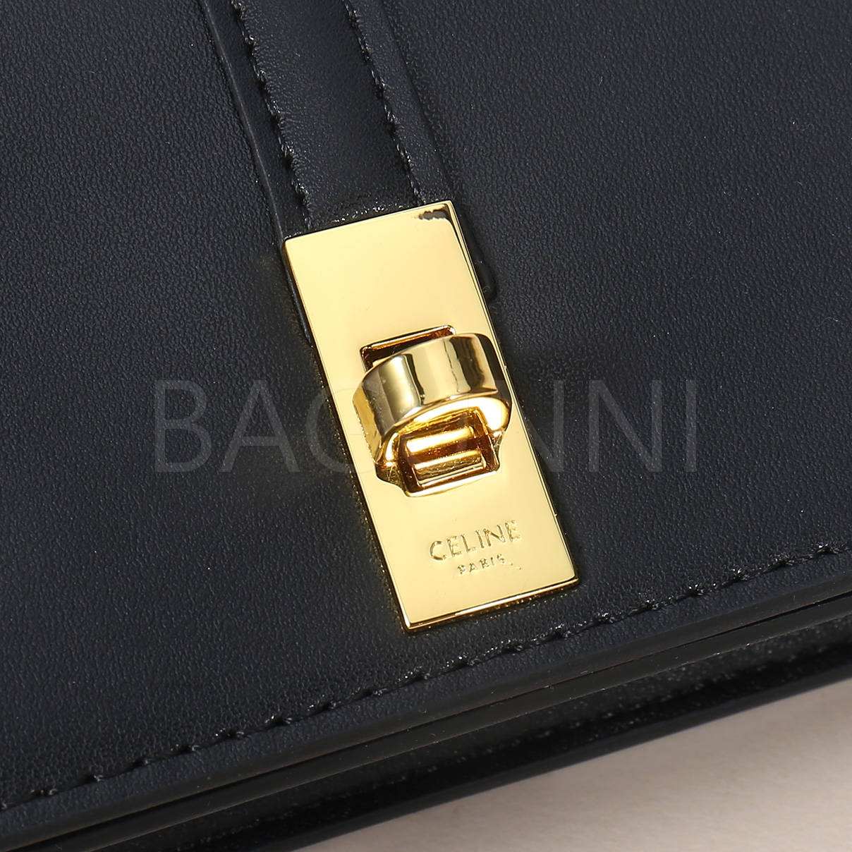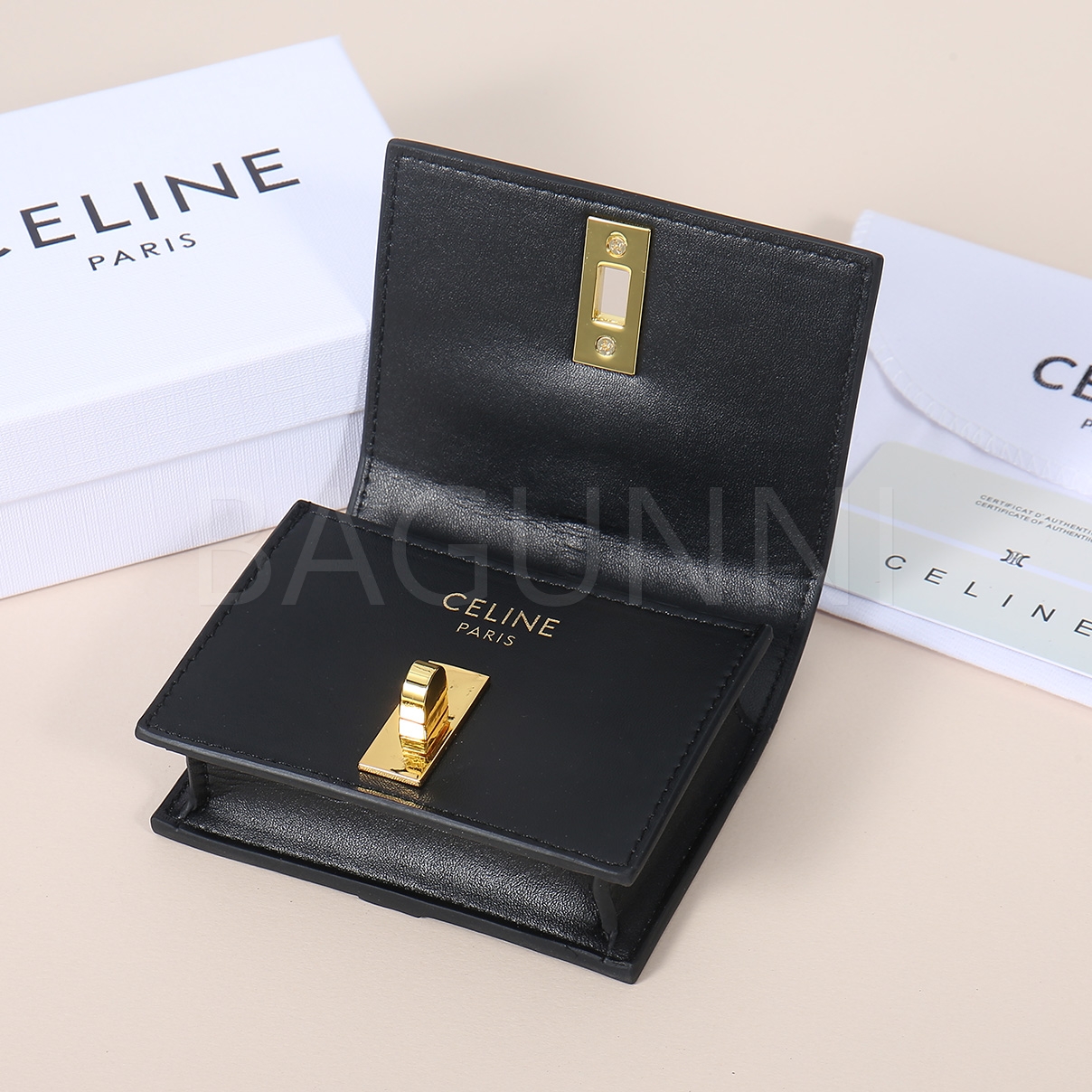 카프스킨의 질감이 돋보이는 셀린느 트리옹프 플랩 카드지갑입니다.