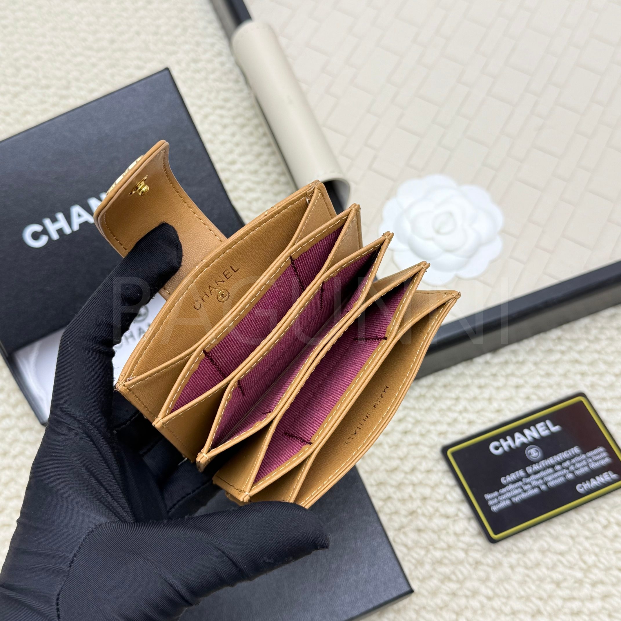 엠보싱 레더의 질감이 돋보이는 샤넬 클래식 플랩 카드지갑입니다.