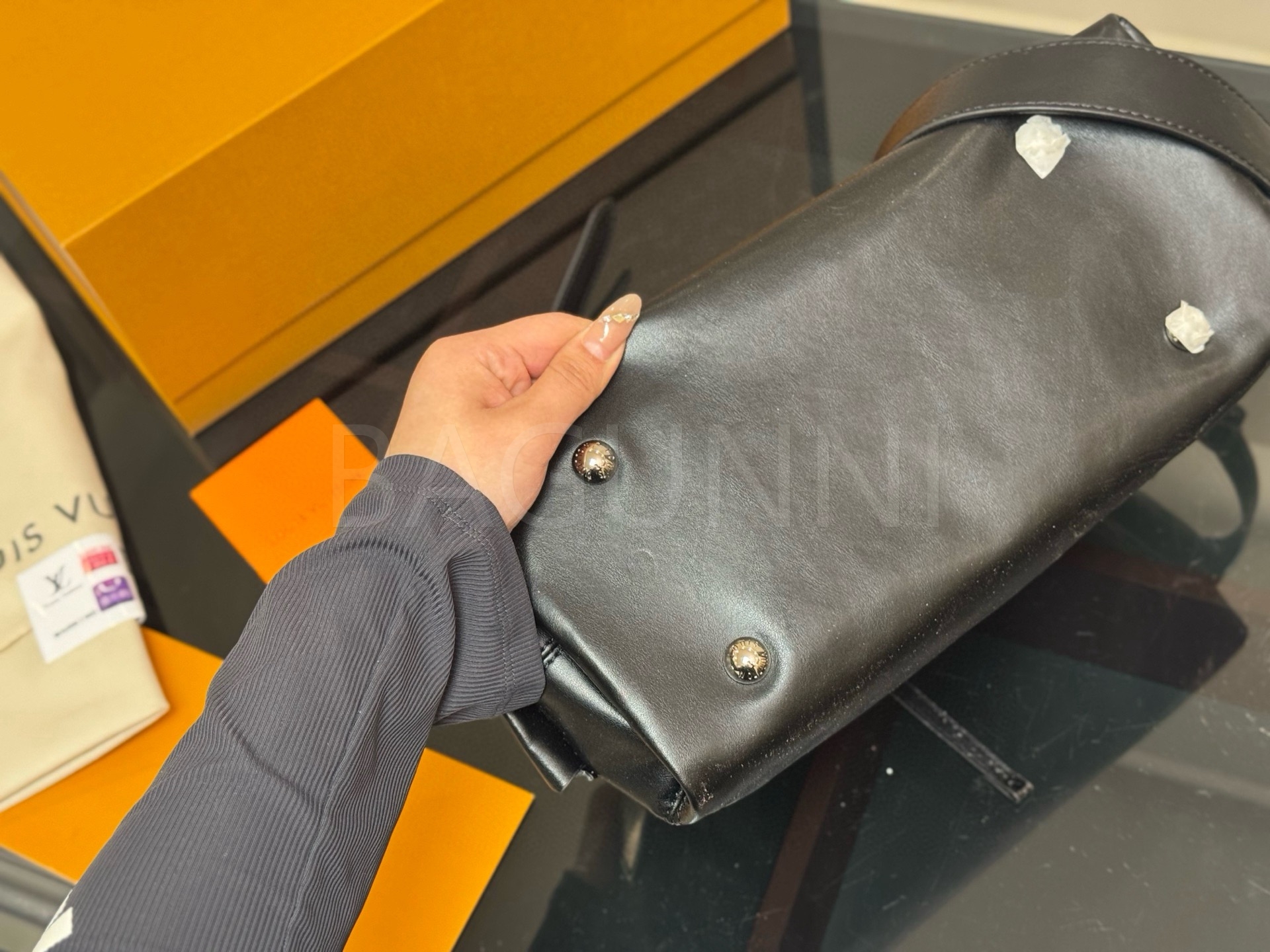 - 가죽 제품의 경우 소재 특성상 자연스러운 주름, 눌림, 스크래치 등이 발생할 수 있으며, 이는 사용 과정에서도 나타나는 부분으로 불량이 아닙니다.