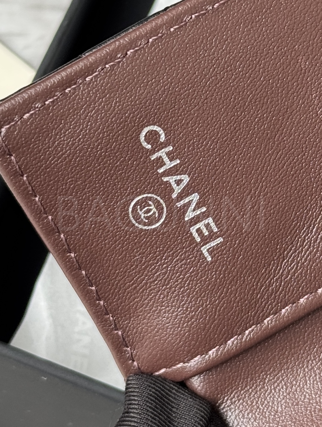 램스킨의 질감이 돋보이는 샤넬 트리폴드 반지갑입니다.