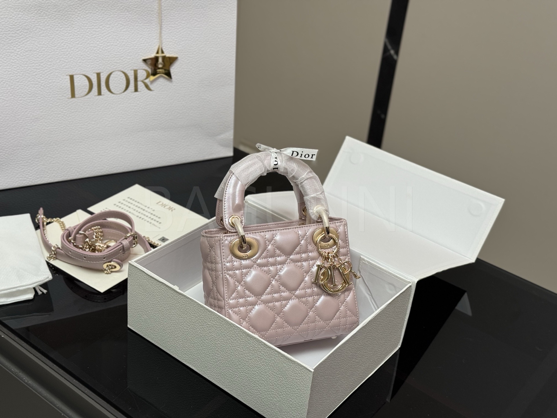 디올 레이디 디올 탑핸들백입니다. 램스킨 특유의 질감이 자연스럽게 살아 있으며 브랜드 특유의 분위기를 편하게 즐기기 좋습니다.