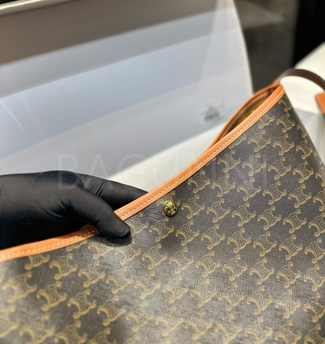 셀린느 트리옹프 숄더백입니다. 가죽 특유의 질감이 자연스럽게 살아 있으며 브랜드 특유의 분위기를 편하게 즐기기 좋습니다.