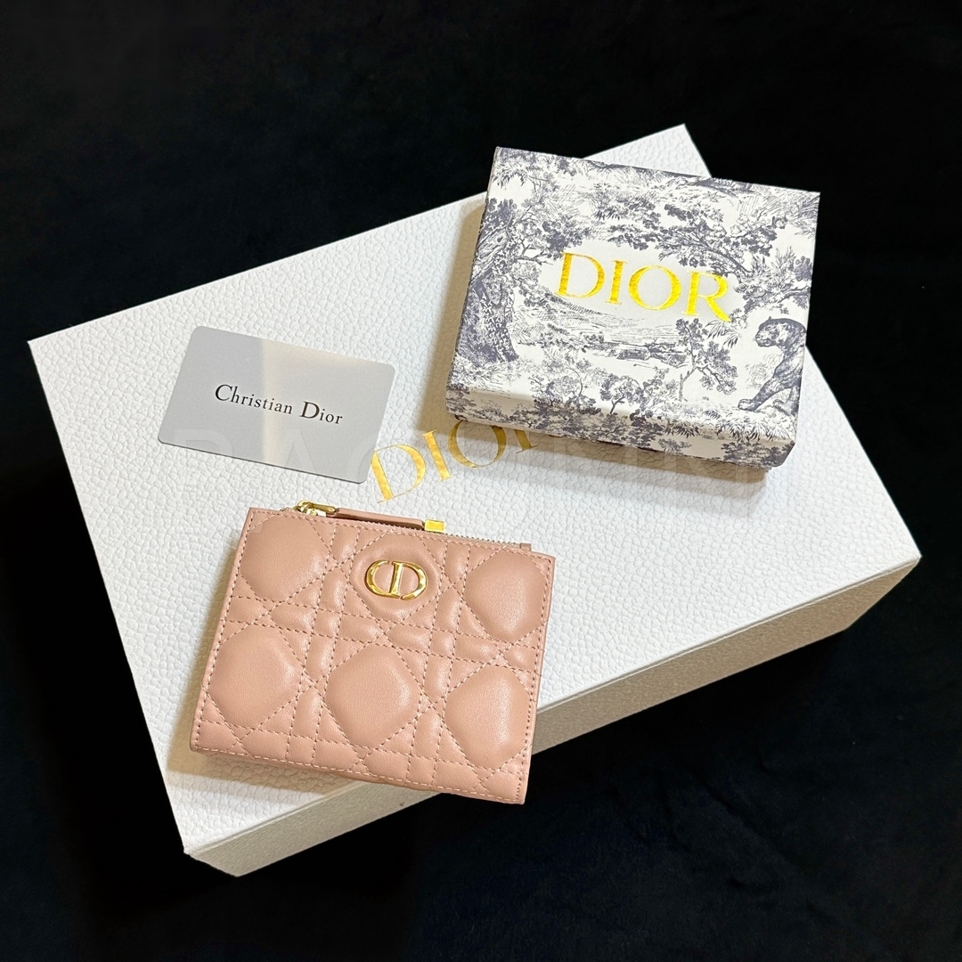 카프스킨의 질감이 돋보이는 디올 카로 카드지갑입니다.