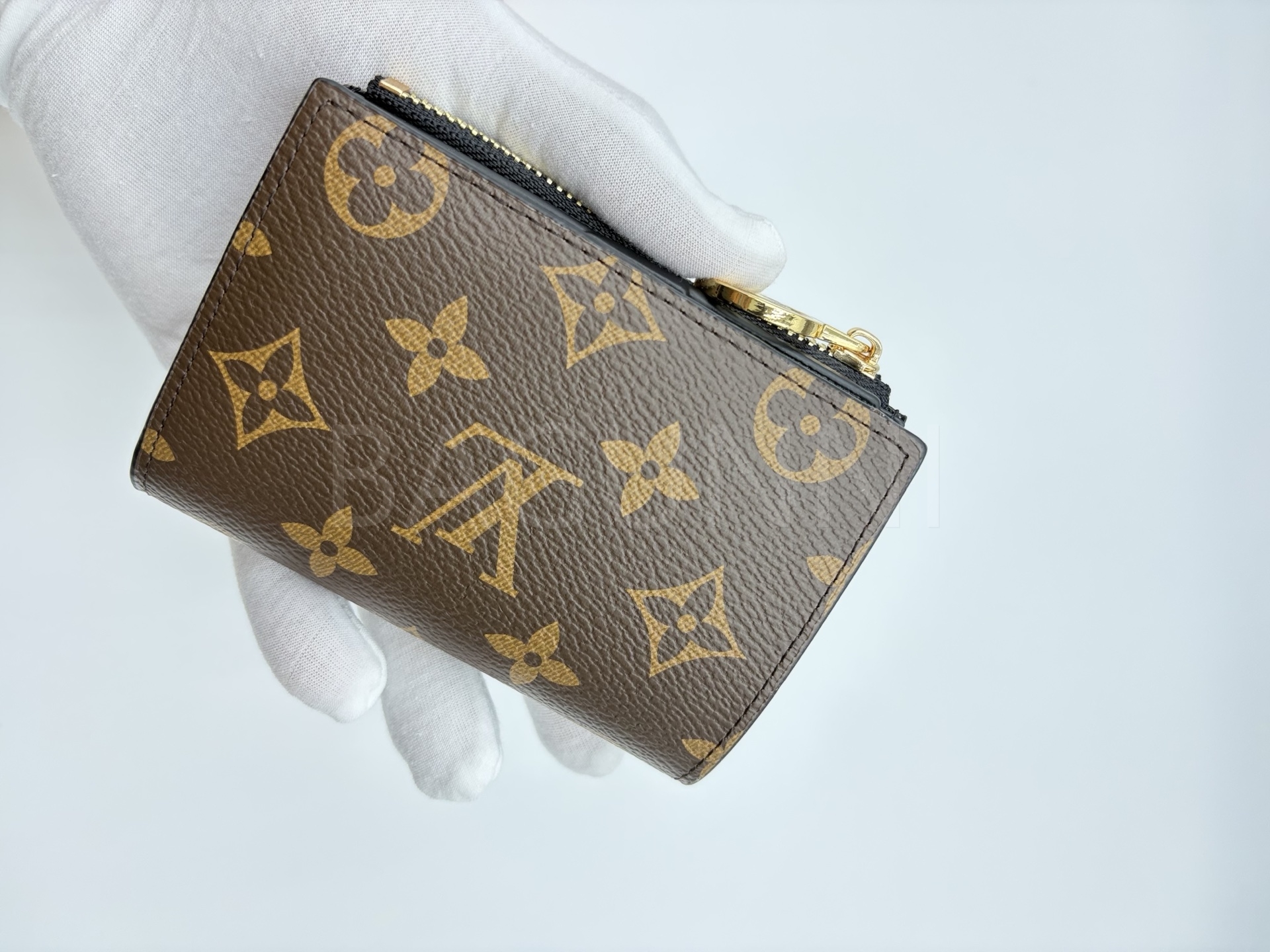모노그램 캔버스의 질감이 돋보이는 루이비통 지갑입니다.