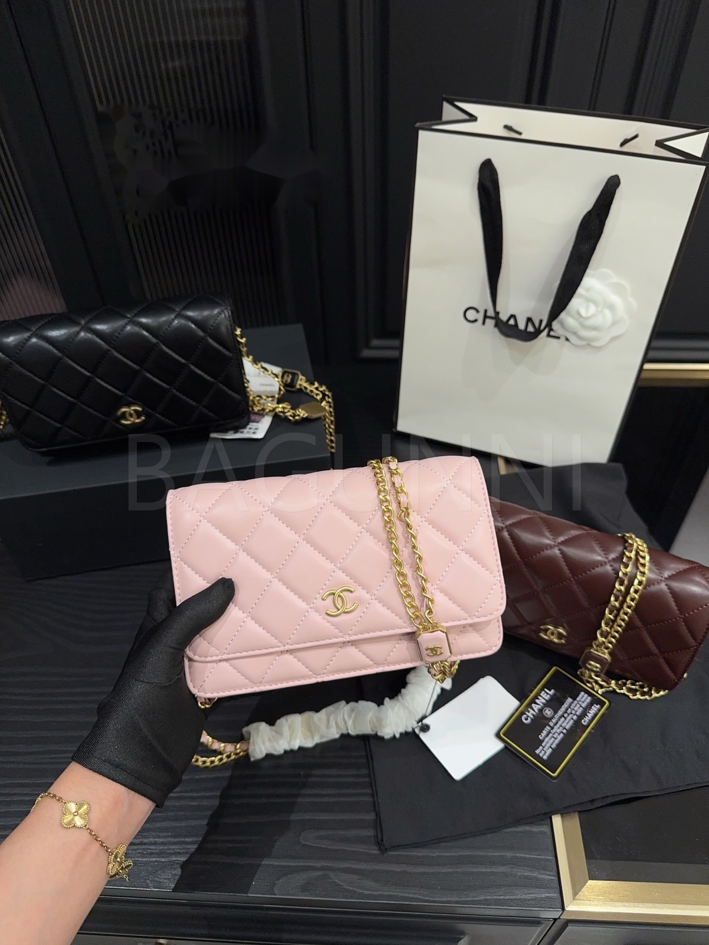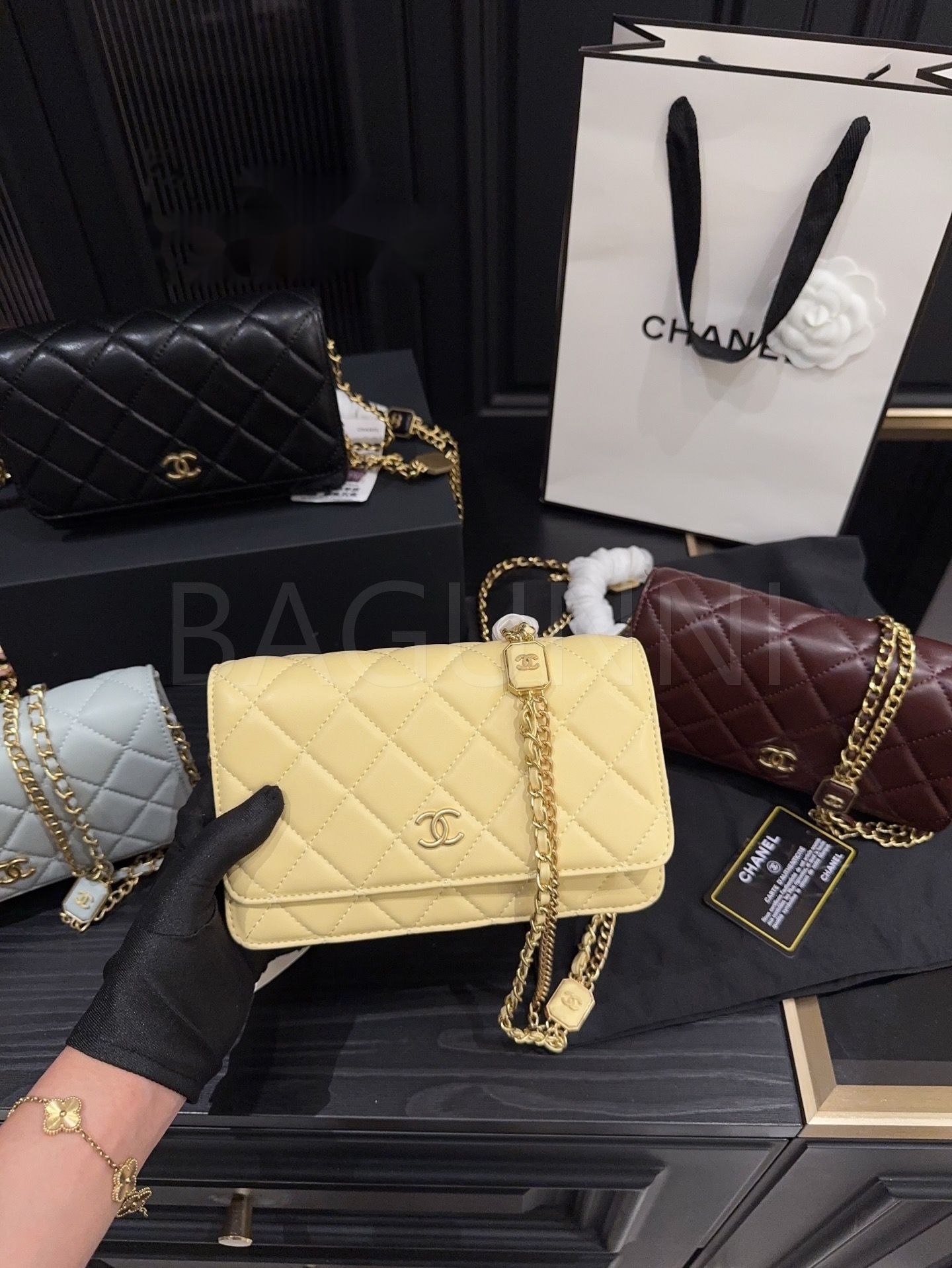 세련된 무드가 돋보이는 샤넬 사각 체인 WOC 체인 월렛입니다.