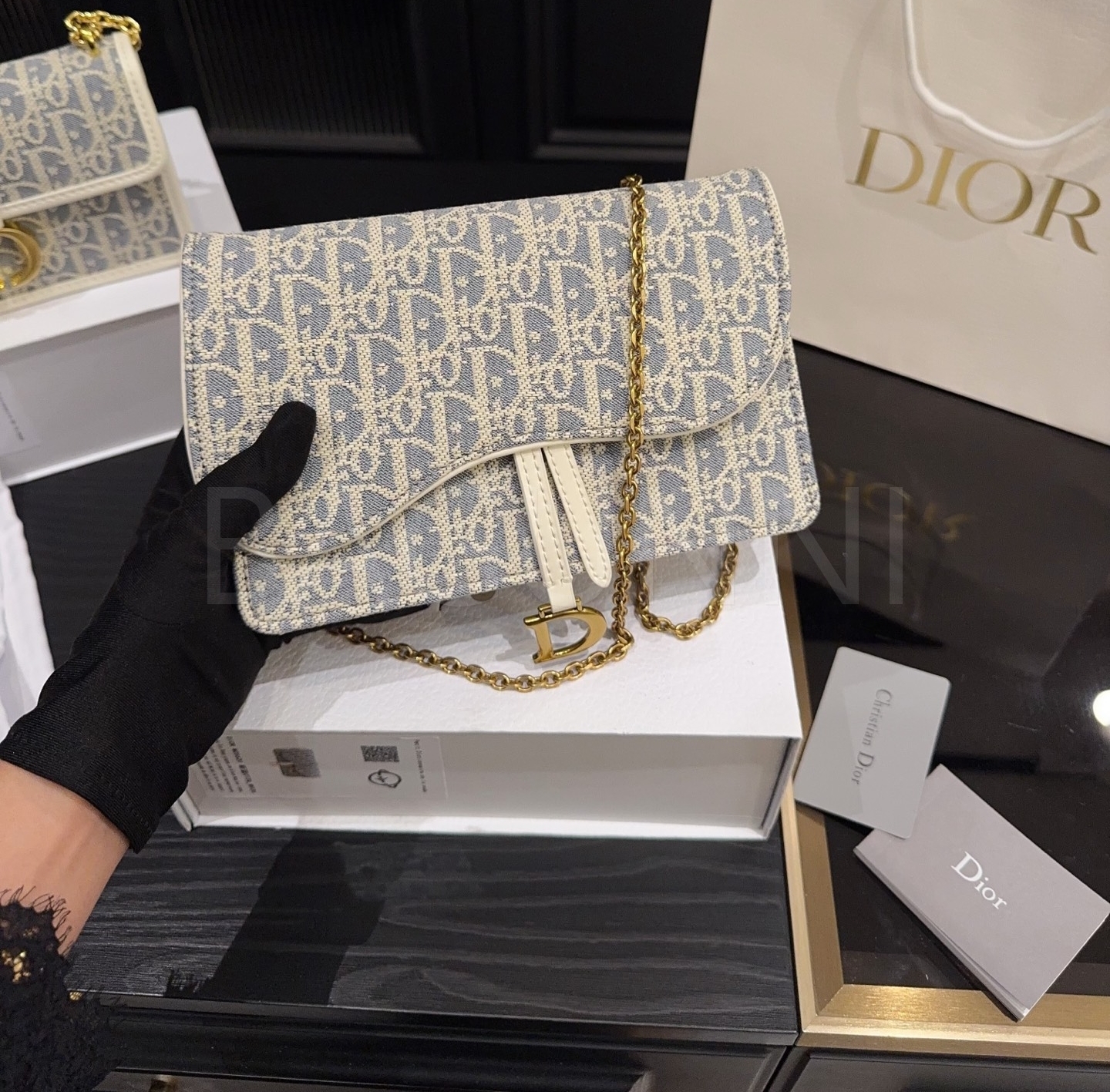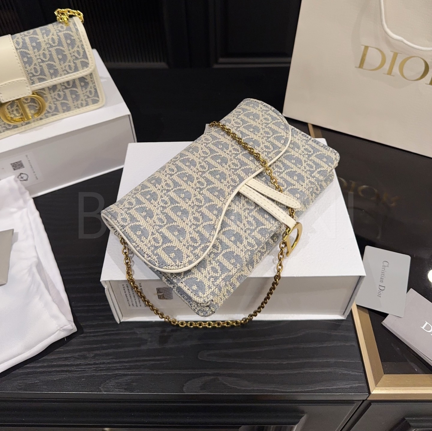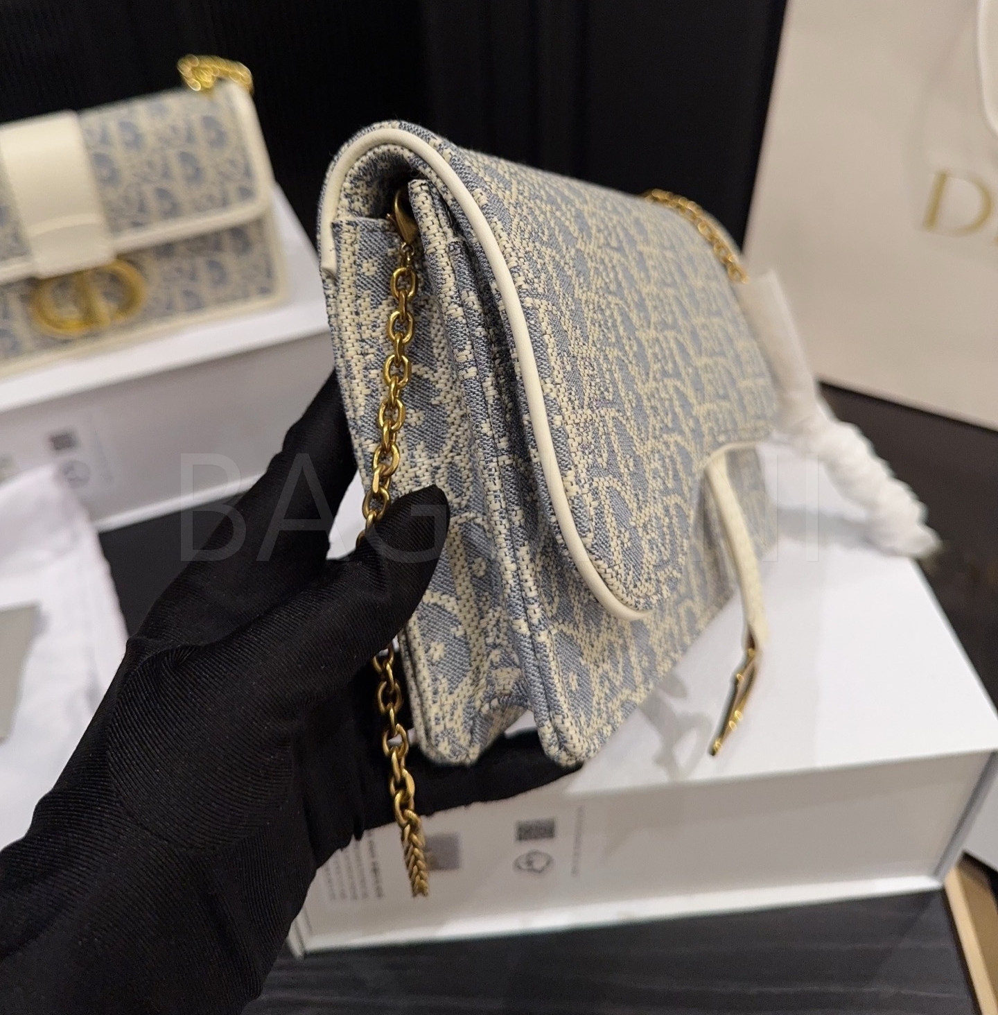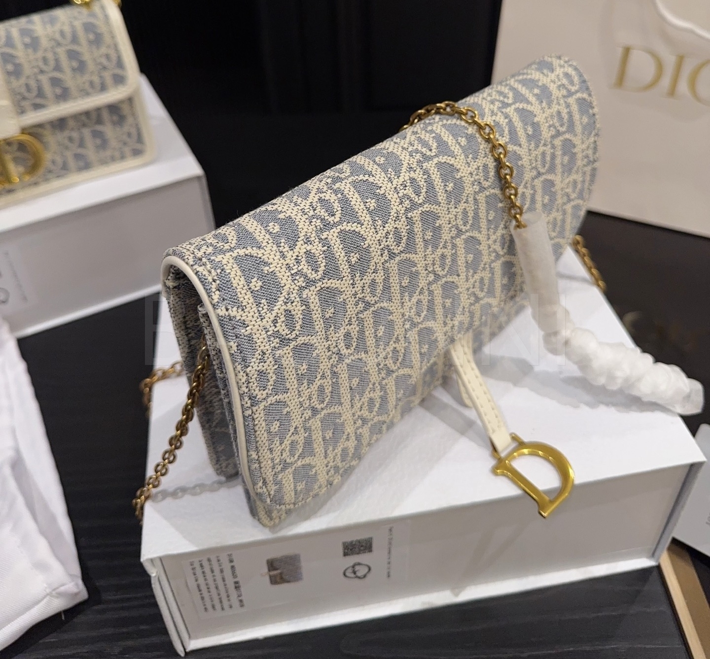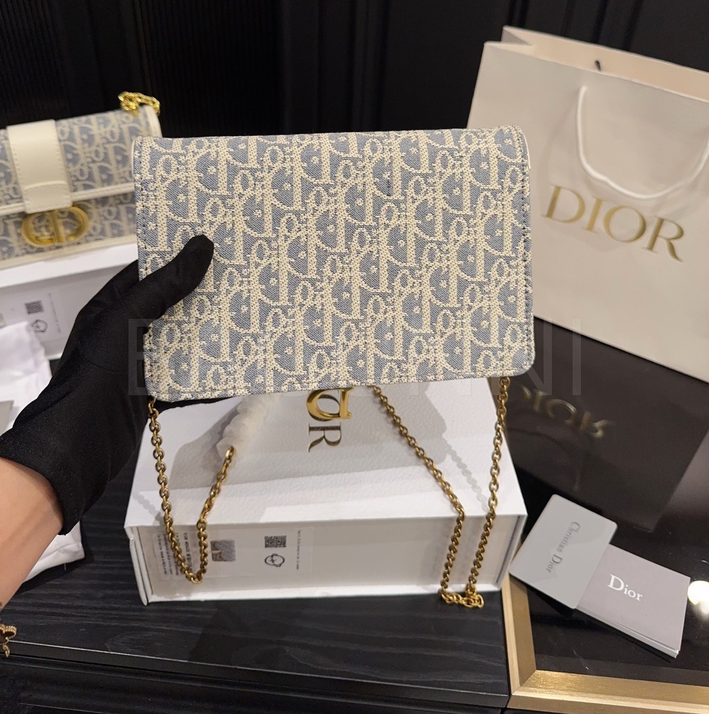 디올 WOC 체인백입니다. 골드 톤이 어우러져 브랜드 특유의 분위기를 편하게 즐기기 좋습니다.