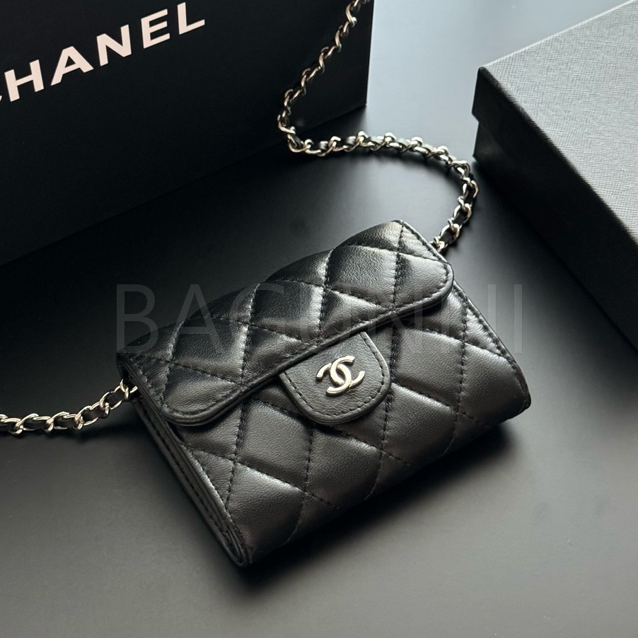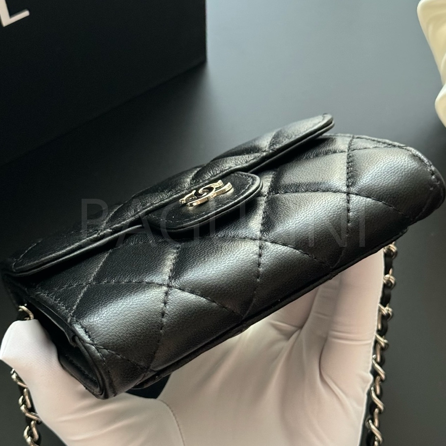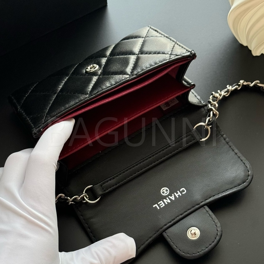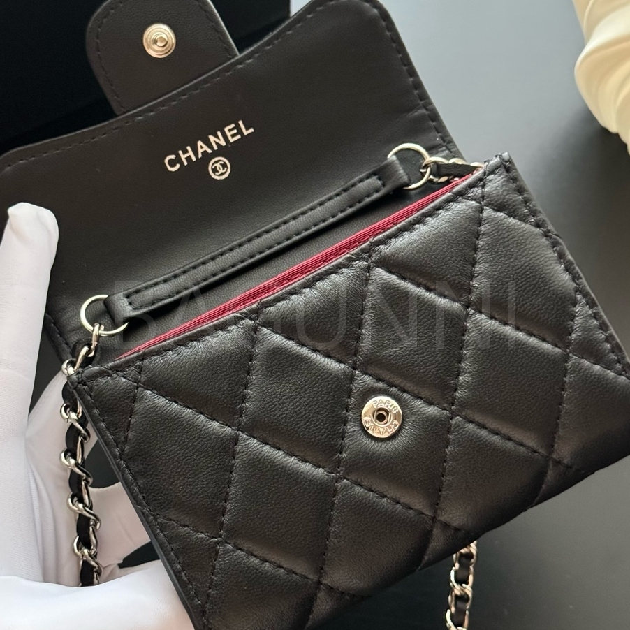 램스킨의 질감이 돋보이는 샤넬 WOC 체인 지갑입니다.