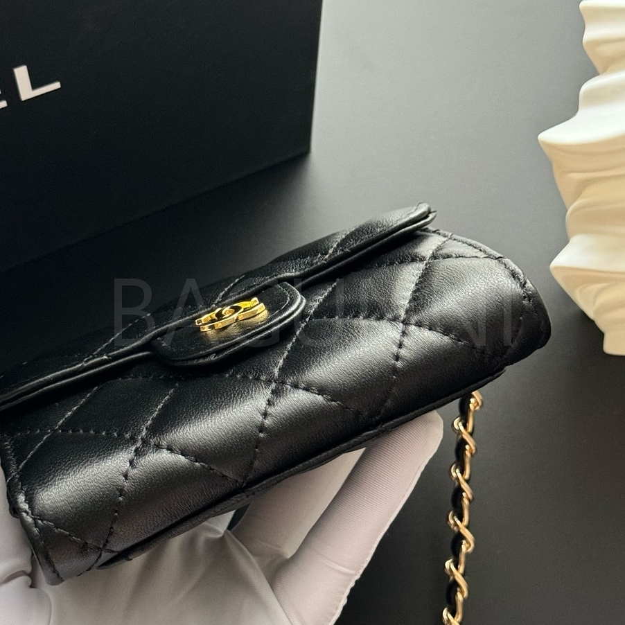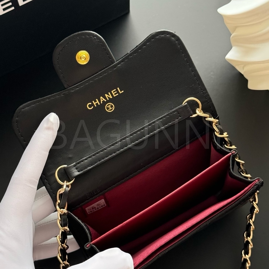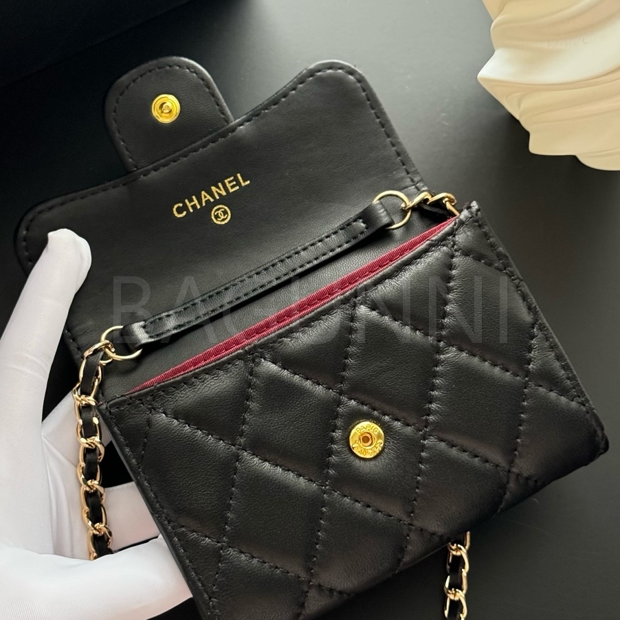 램스킨의 질감이 돋보이는 샤넬 WOC 체인 지갑입니다.