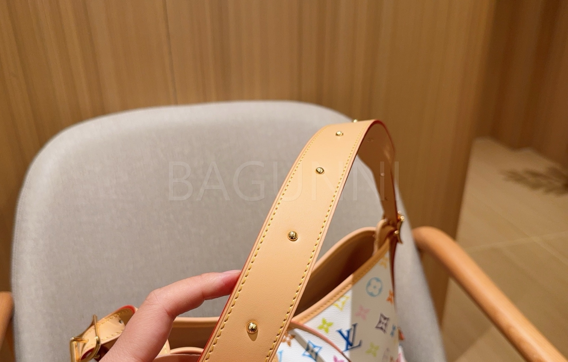 멀티컬러 모노그램 디테일이 조화롭게 어우러져 완성도를 높여줍니다