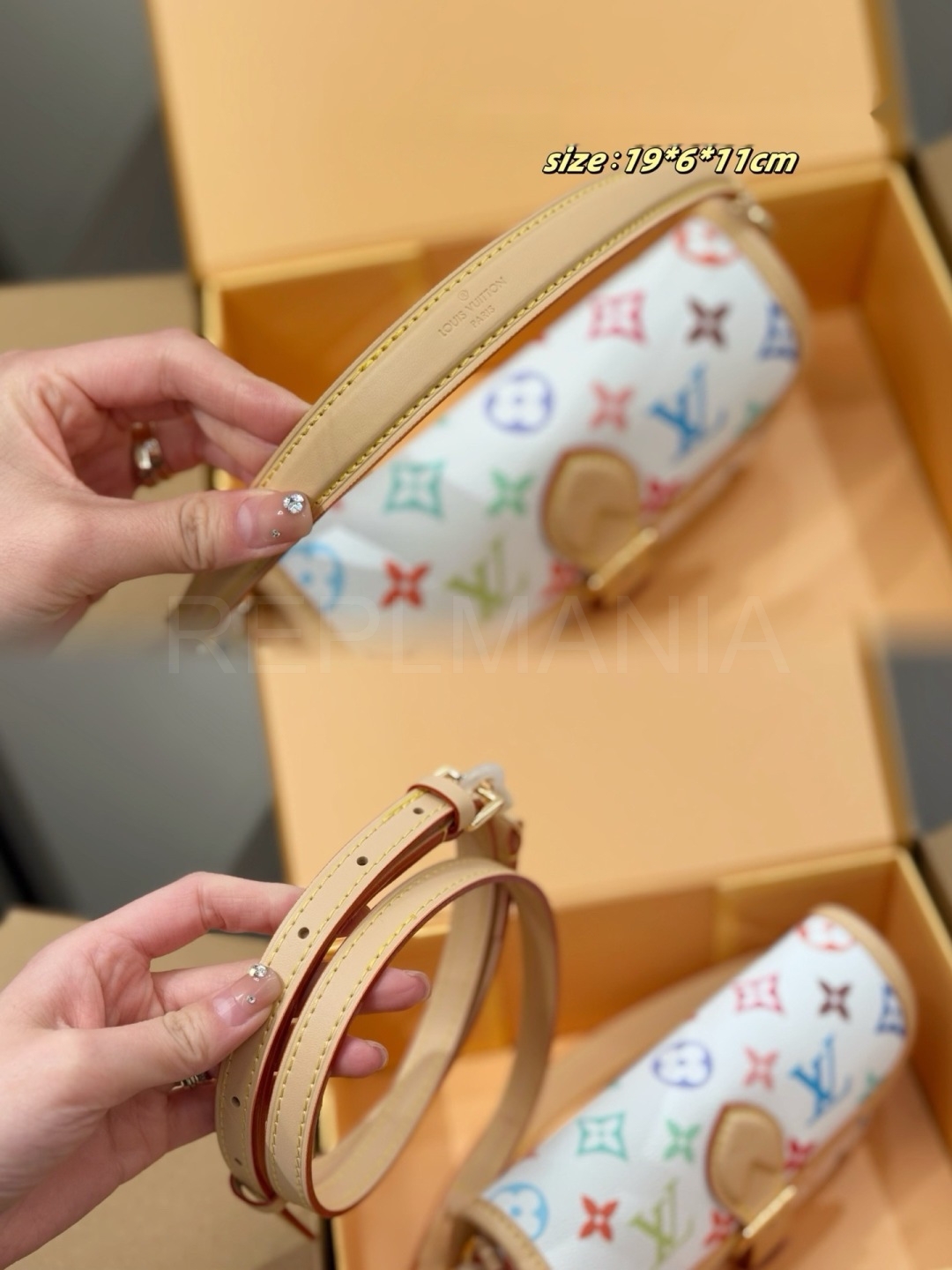 멀티컬러 모노그램, 탑핸들, 숄더와 크로스 연출, 슬림한 숄더 실루엣 디테일이 조화롭게 어우러져 완성도를 높여줍니다