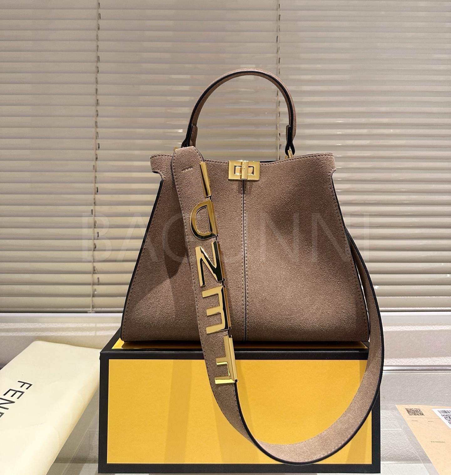 펜디 피카부 X-라이트 스웨이드 탑핸들백은 세련된 실루엣을 담은 아이템입니다.
