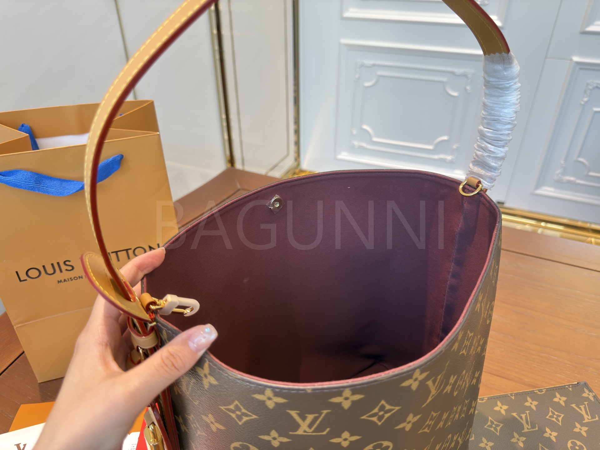 탑핸들, 버킷 실루엣, 숄더와 크로스 연출 디테일이 조화롭게 어우러져 완성도를 높여줍니다
