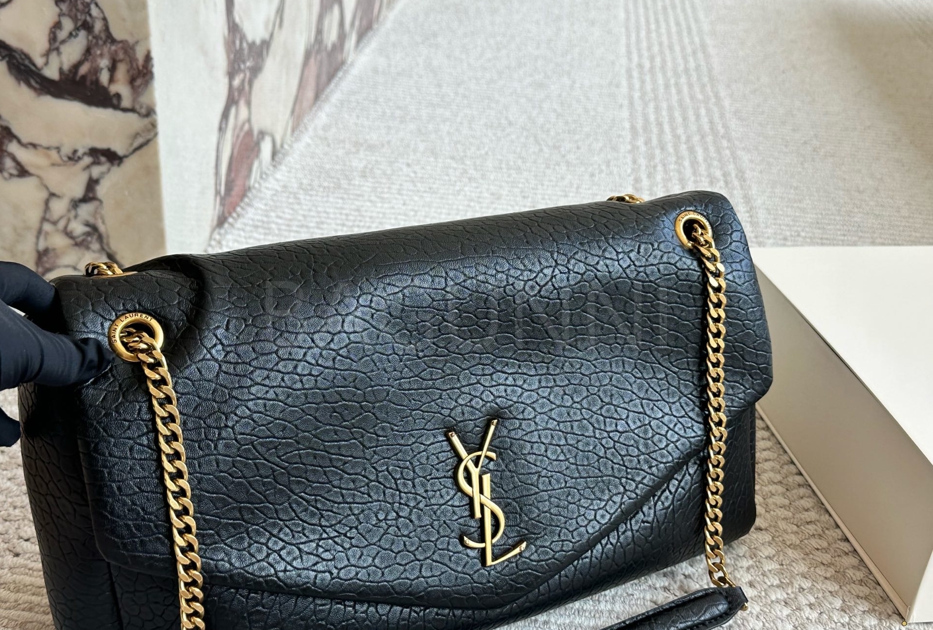 YSL 빅 로고 체인백입니다. 브랜드 특유의 분위기를 편하게 즐기기 좋습니다.