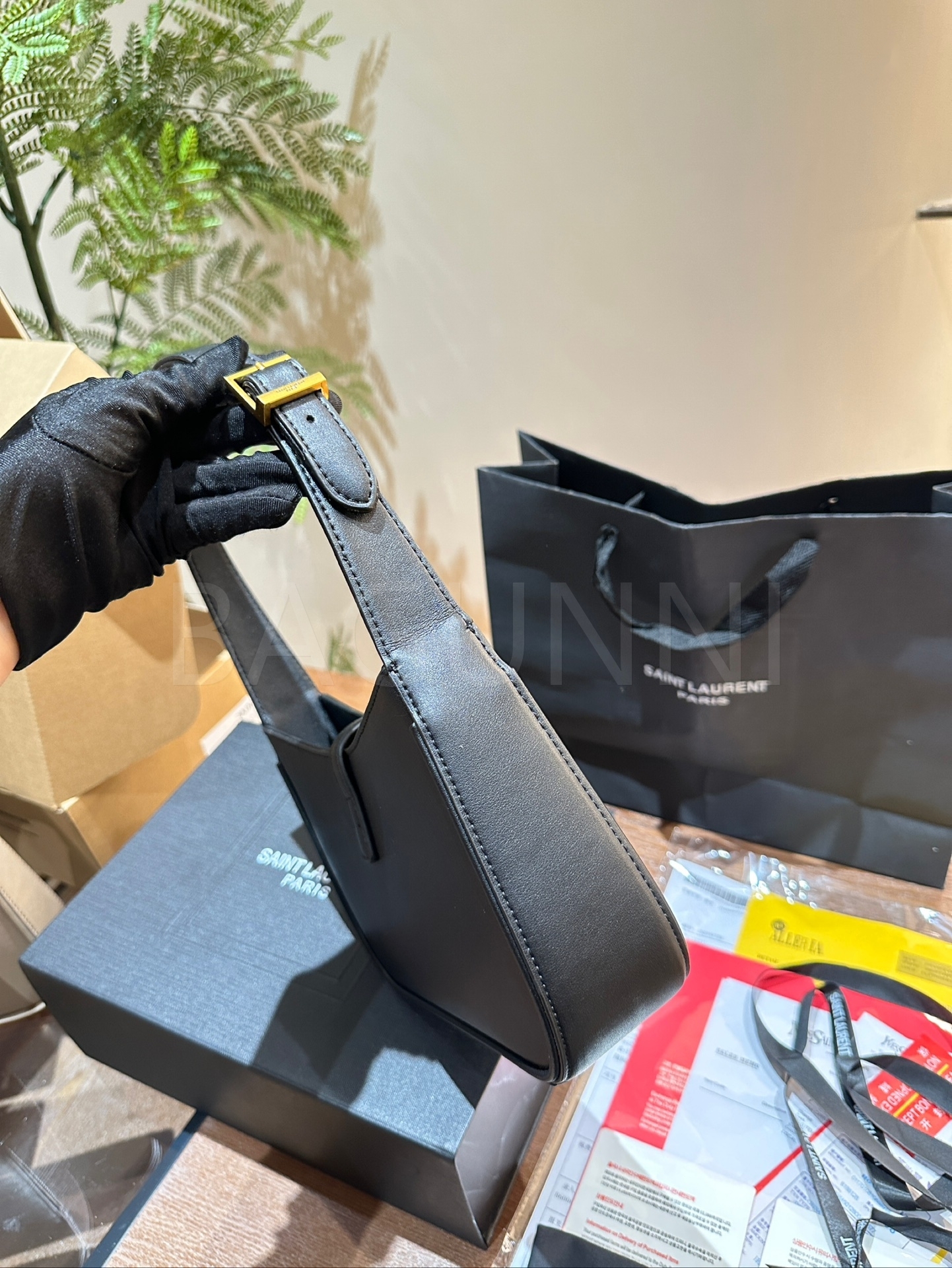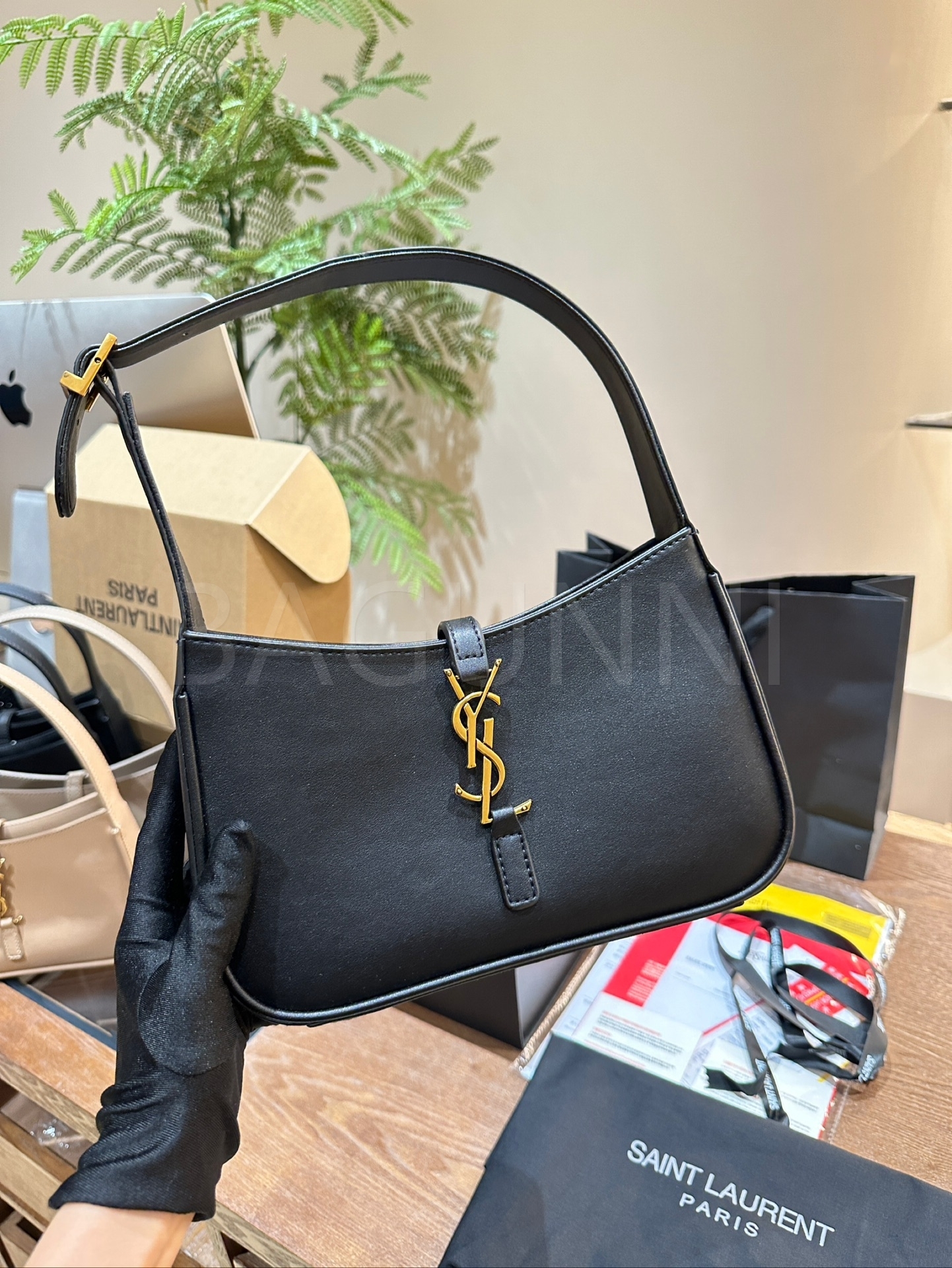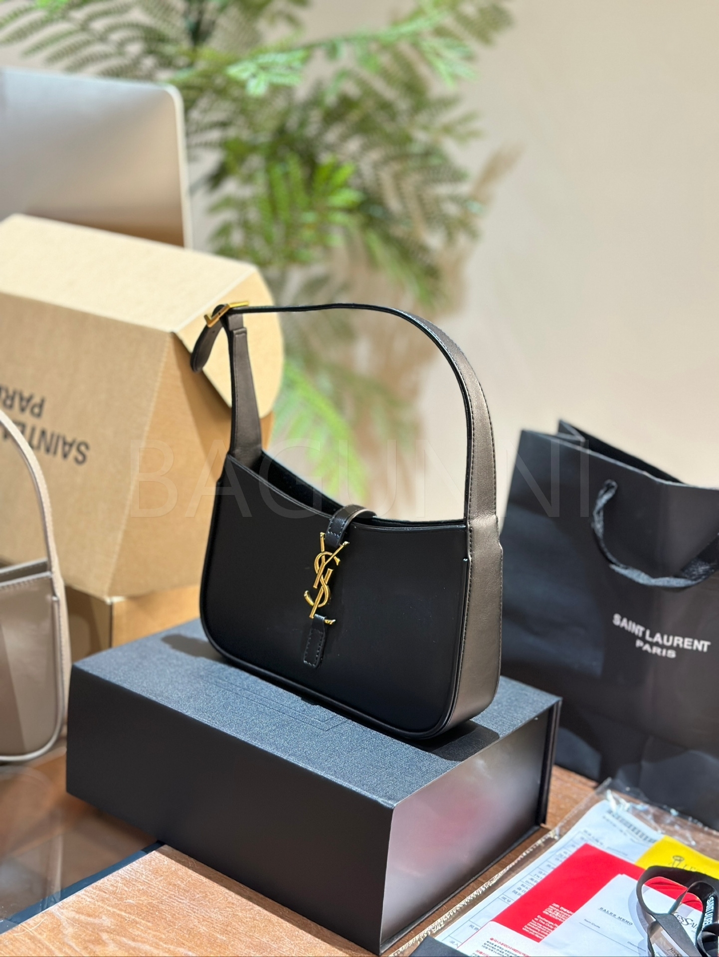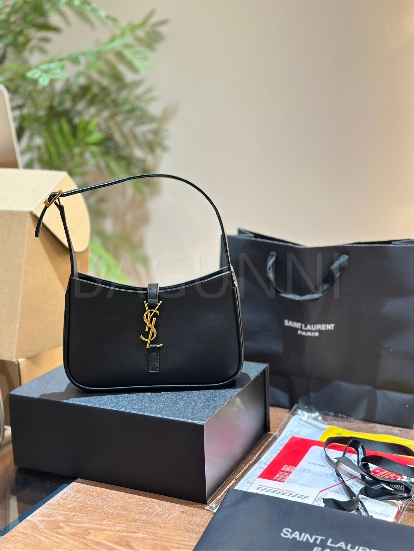 YSL 빅 로고 숄더백입니다. 블랙 톤이 어우러져 브랜드 특유의 분위기를 편하게 즐기기 좋습니다.
