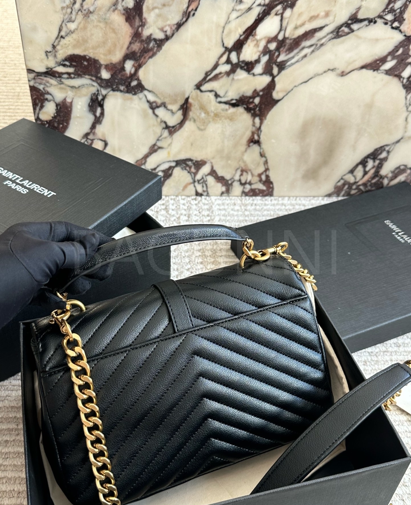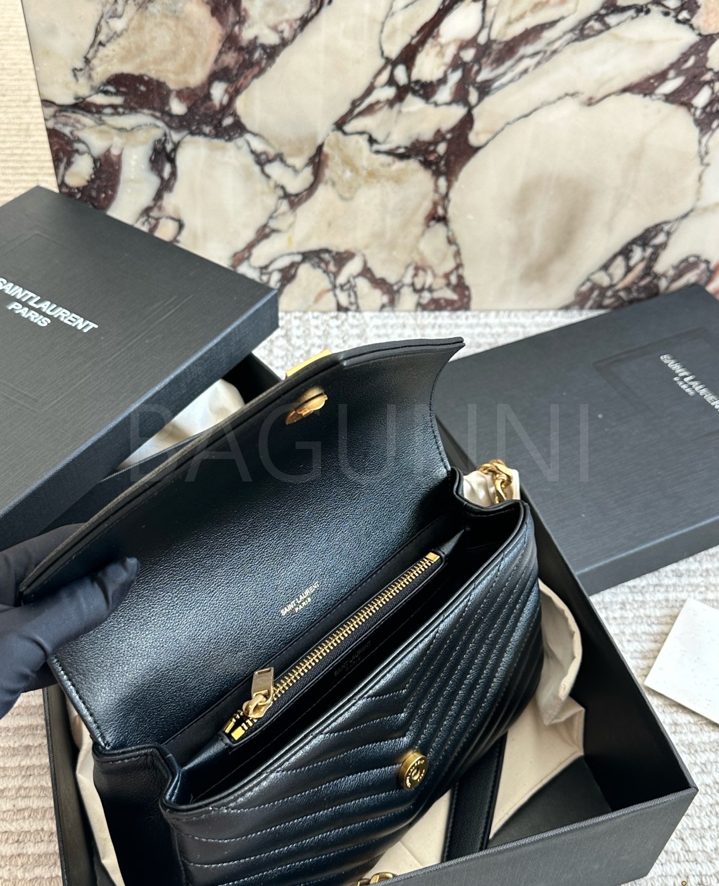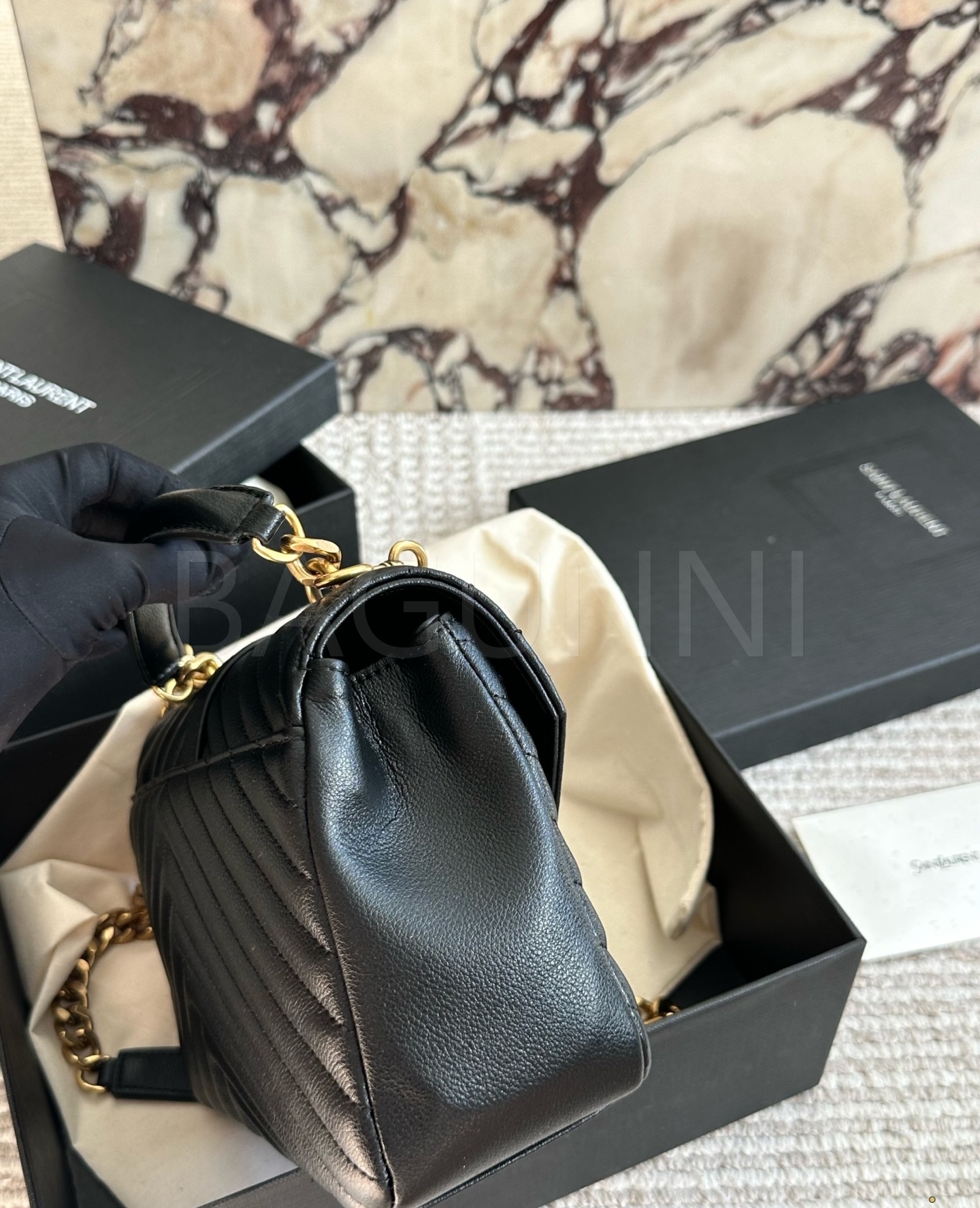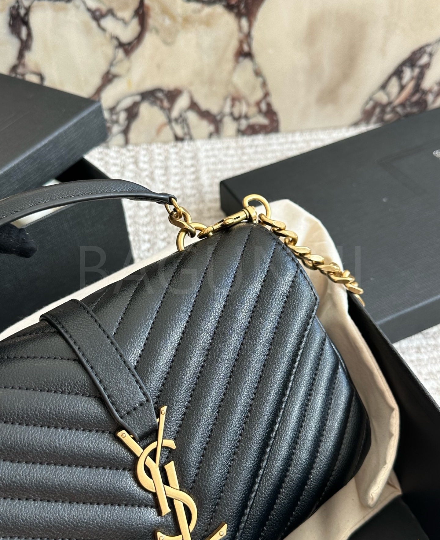 YSL 빅 로고 메신저백입니다. 가죽 특유의 질감이 자연스럽게 살아 있으며 브랜드 특유의 분위기를 편하게 즐기기 좋습니다.