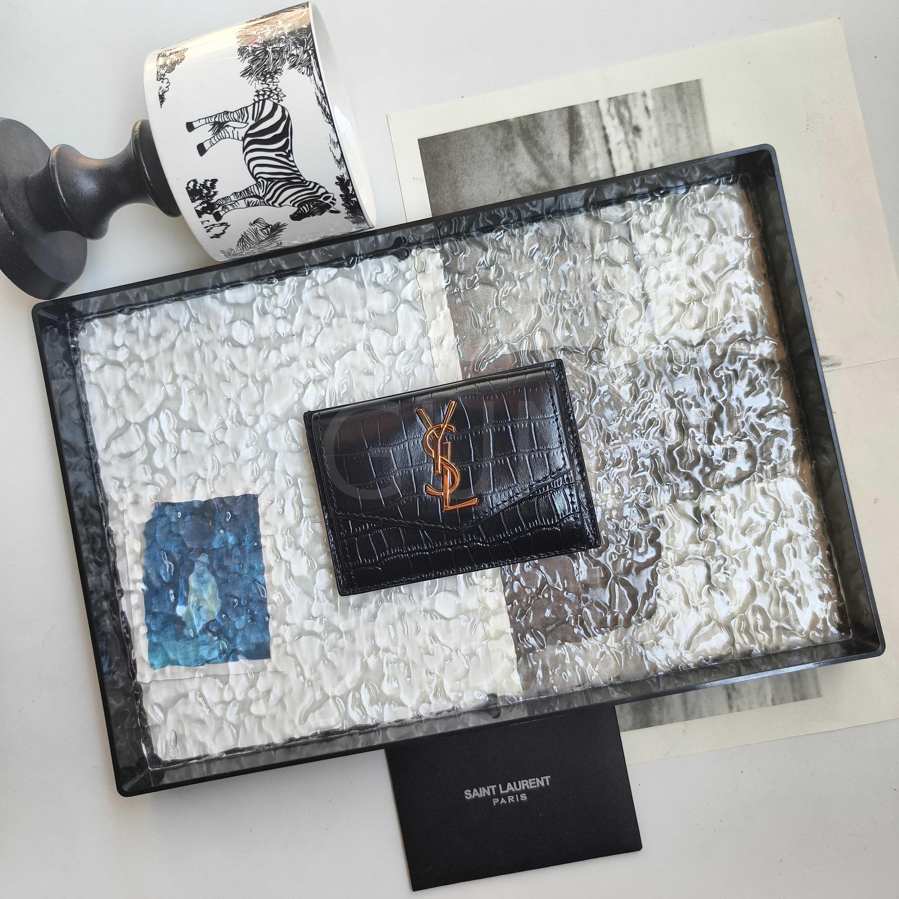 YSL 카산드라 플랩 카드지갑 특유의 분위기가 자연스럽게 드러나는 디자인입니다.