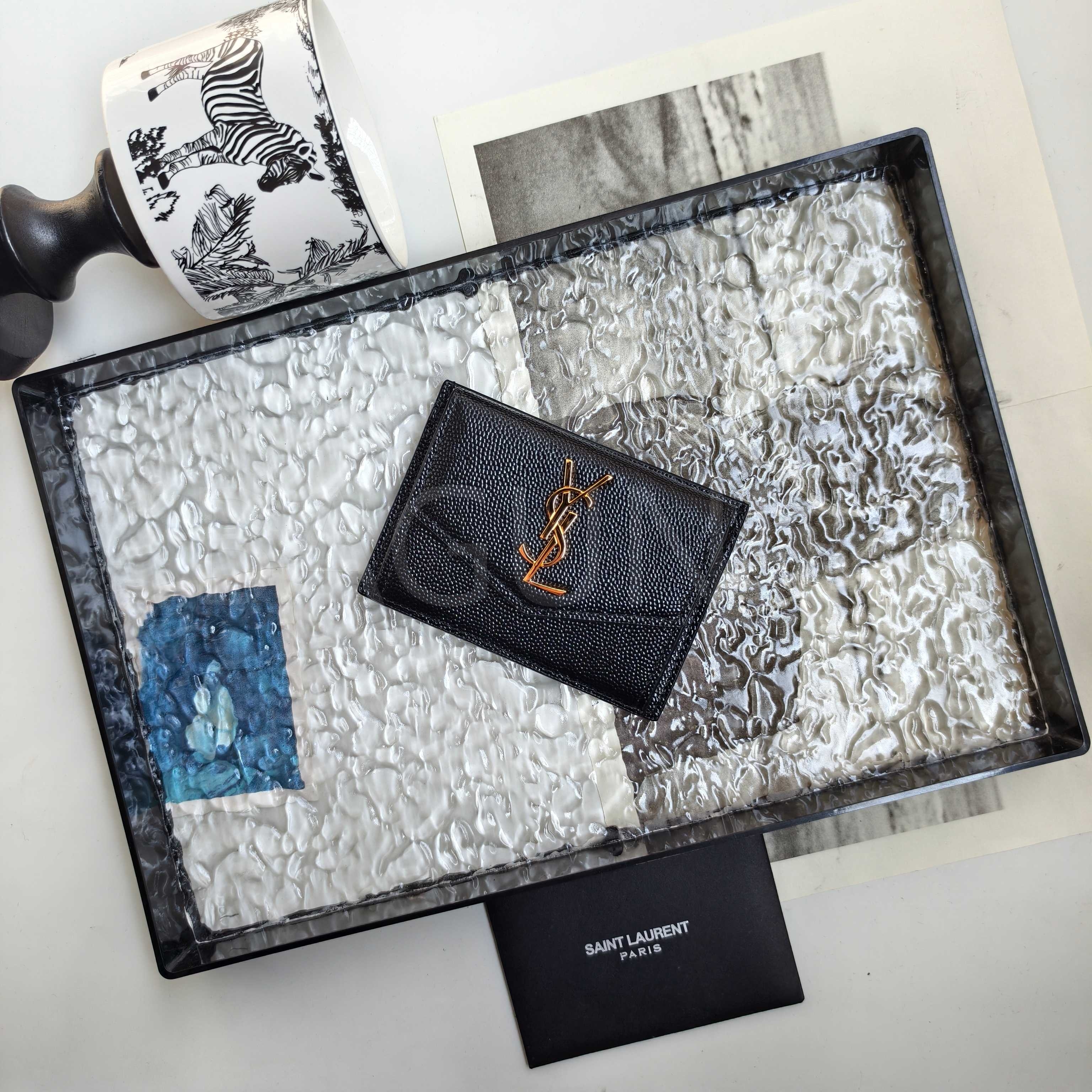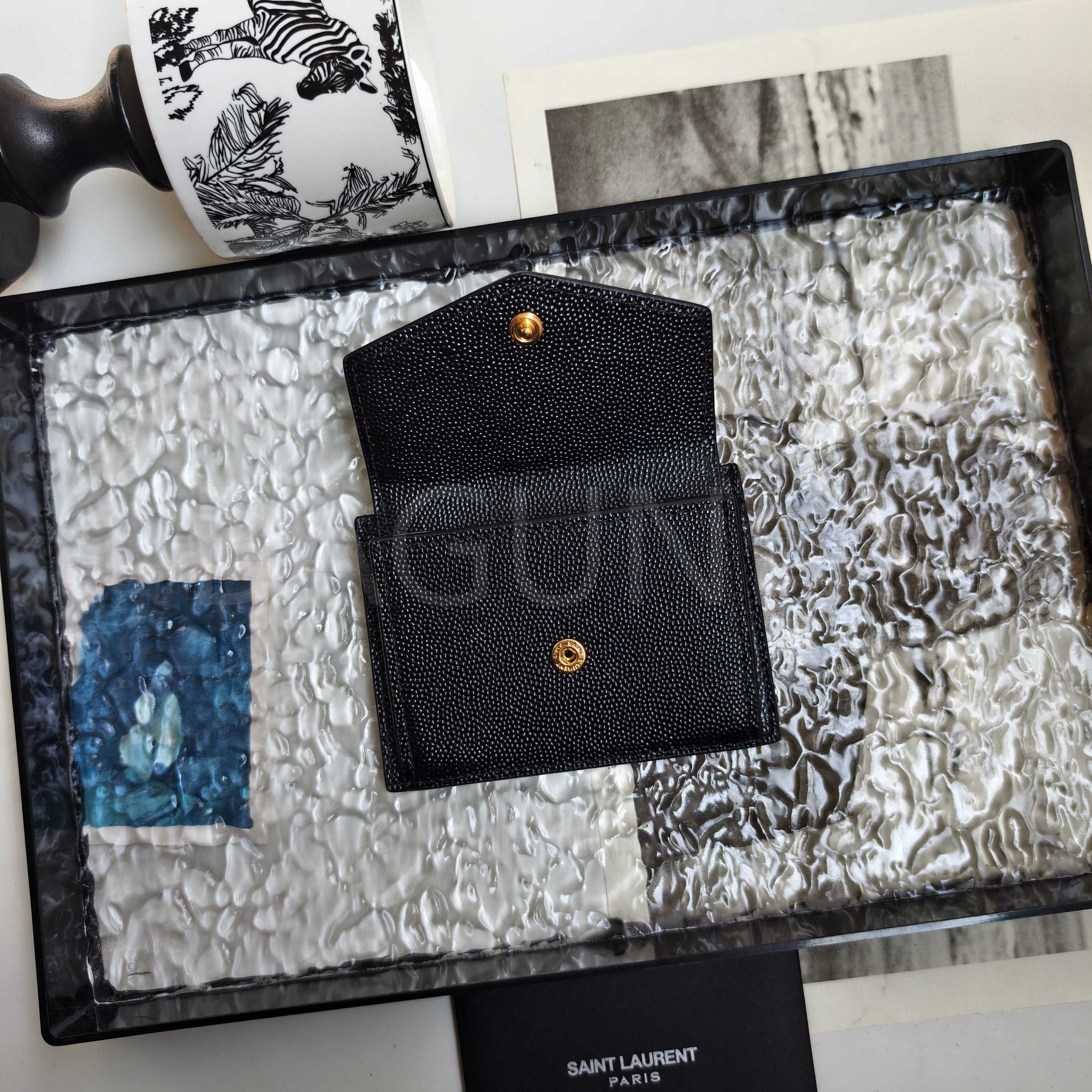 YSL 카산드라 플랩 카드지갑 특유의 분위기가 자연스럽게 드러나는 디자인입니다.