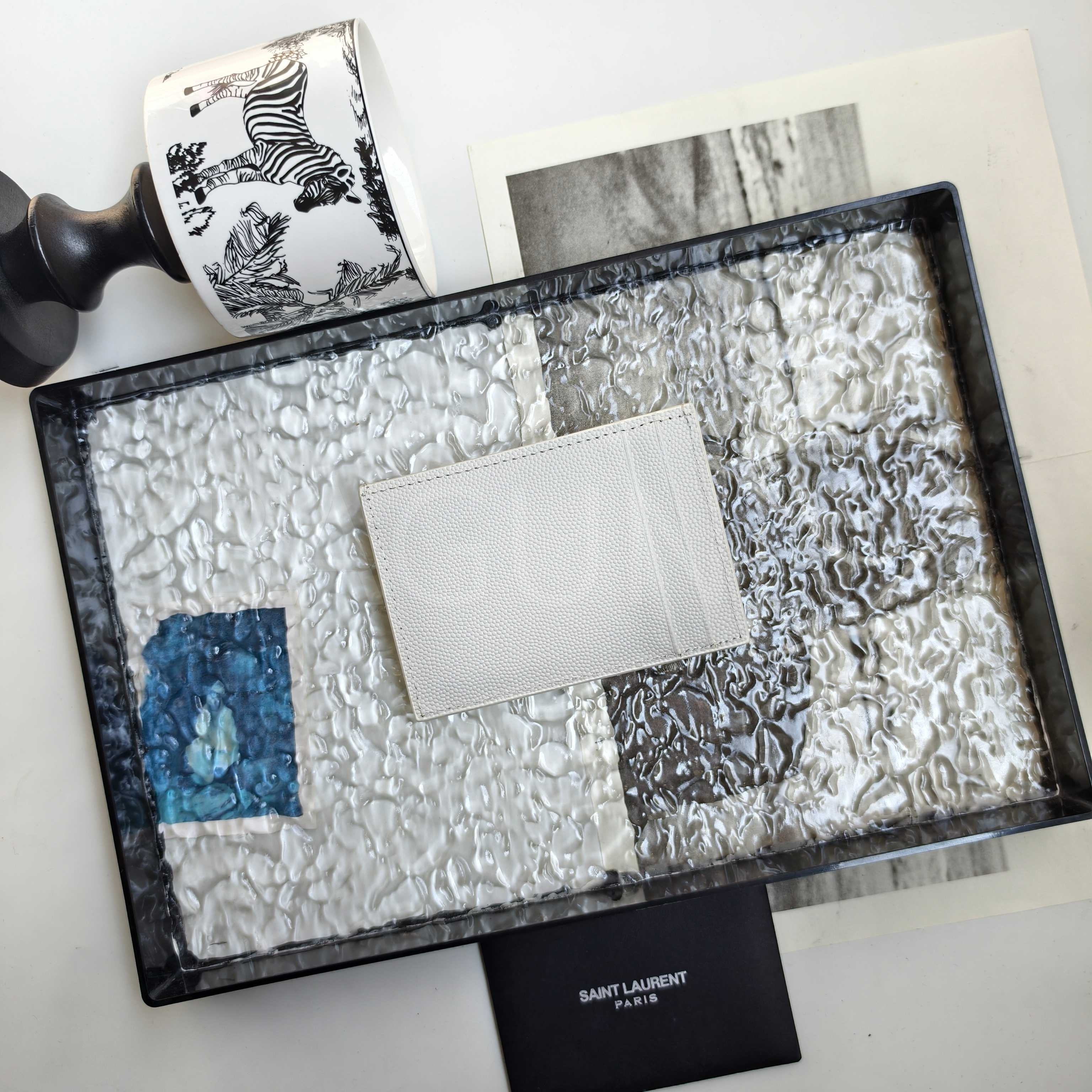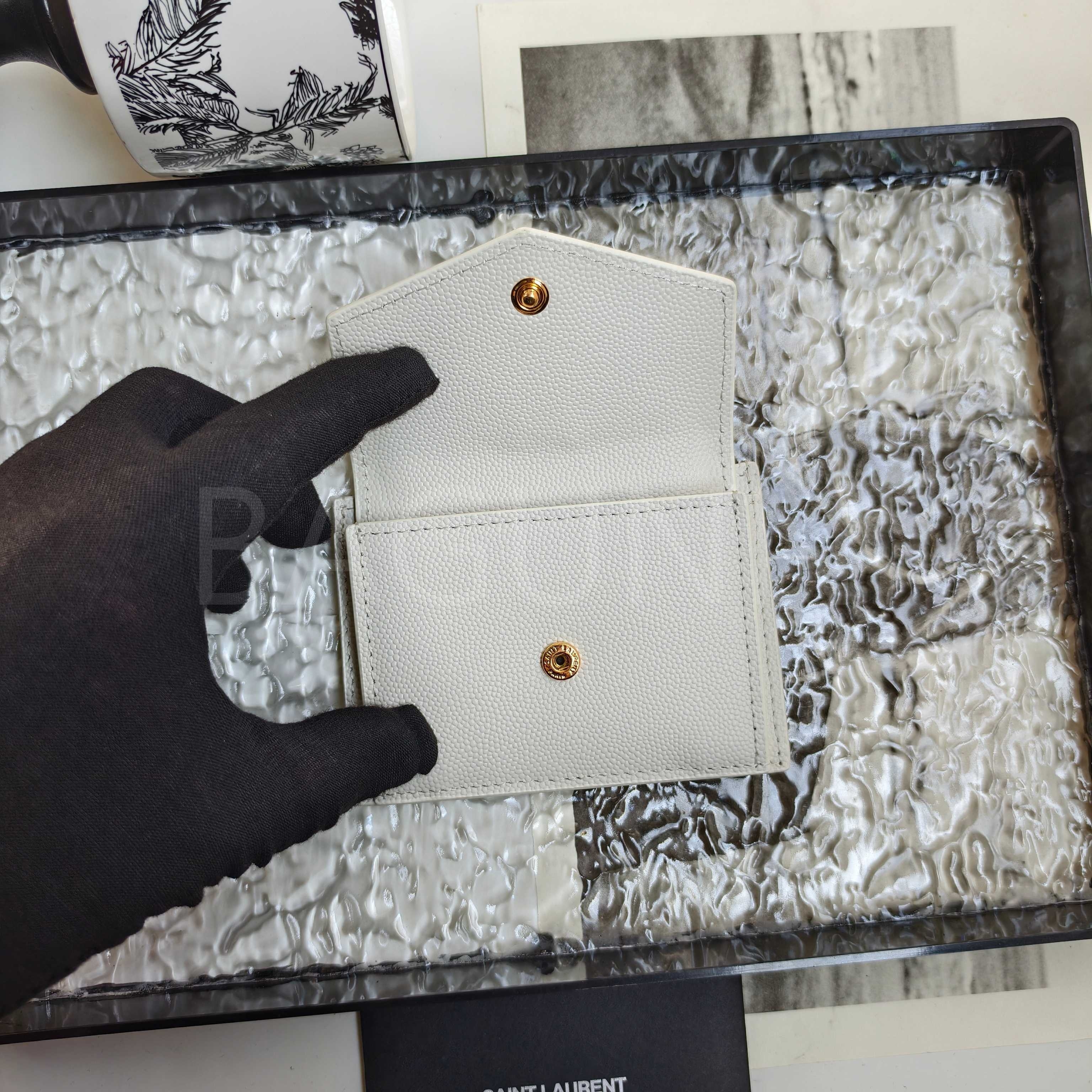 YSL 카산드라 플랩 카드지갑 특유의 분위기가 자연스럽게 드러나는 디자인입니다.