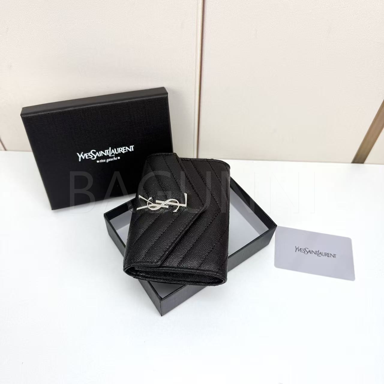 YSL 특유의 무드가 자연스럽게 살아있는 플랩 카드지갑입니다.