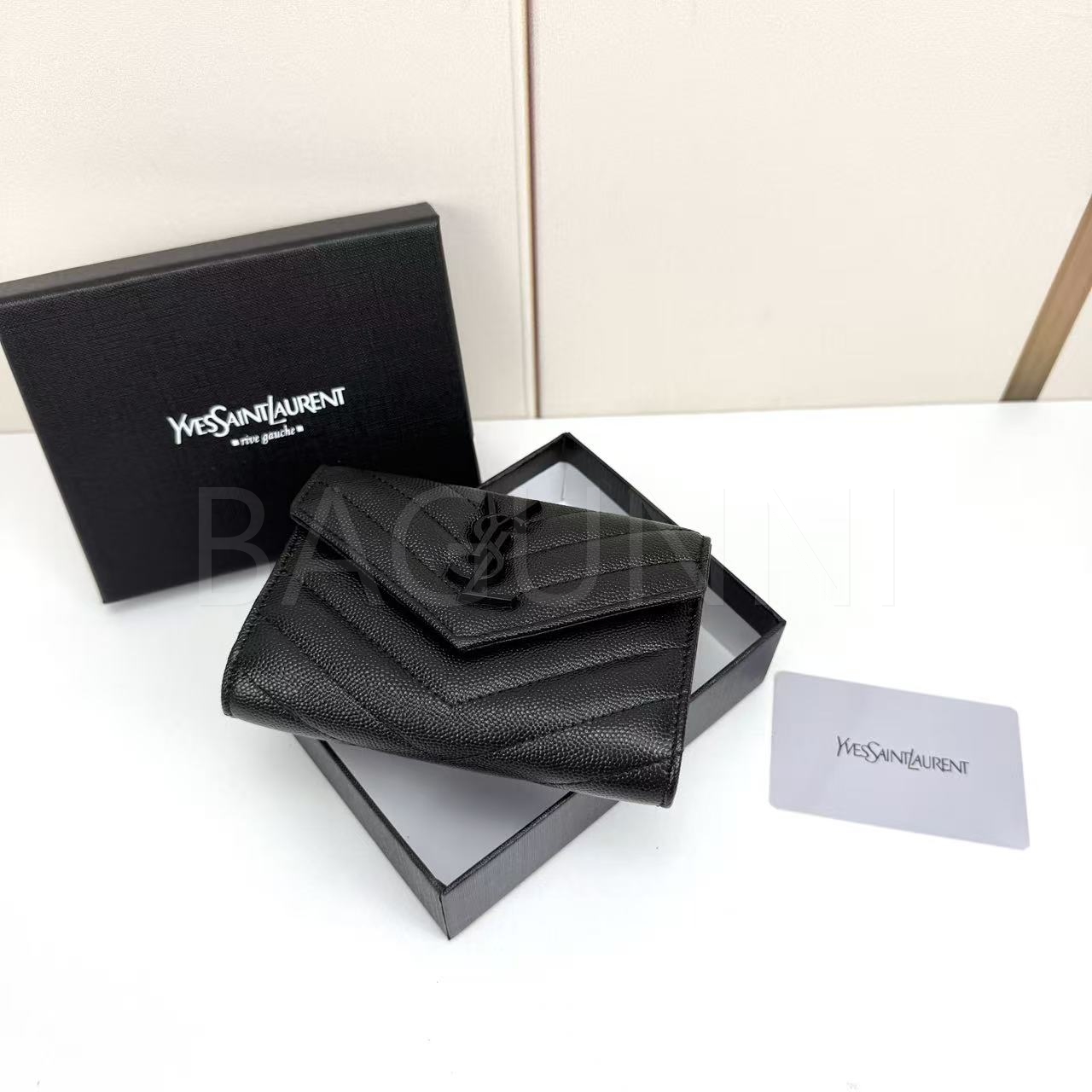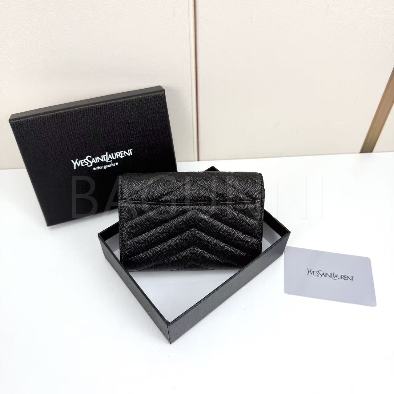 YSL 특유의 무드가 자연스럽게 살아있는 플랩 카드지갑입니다.