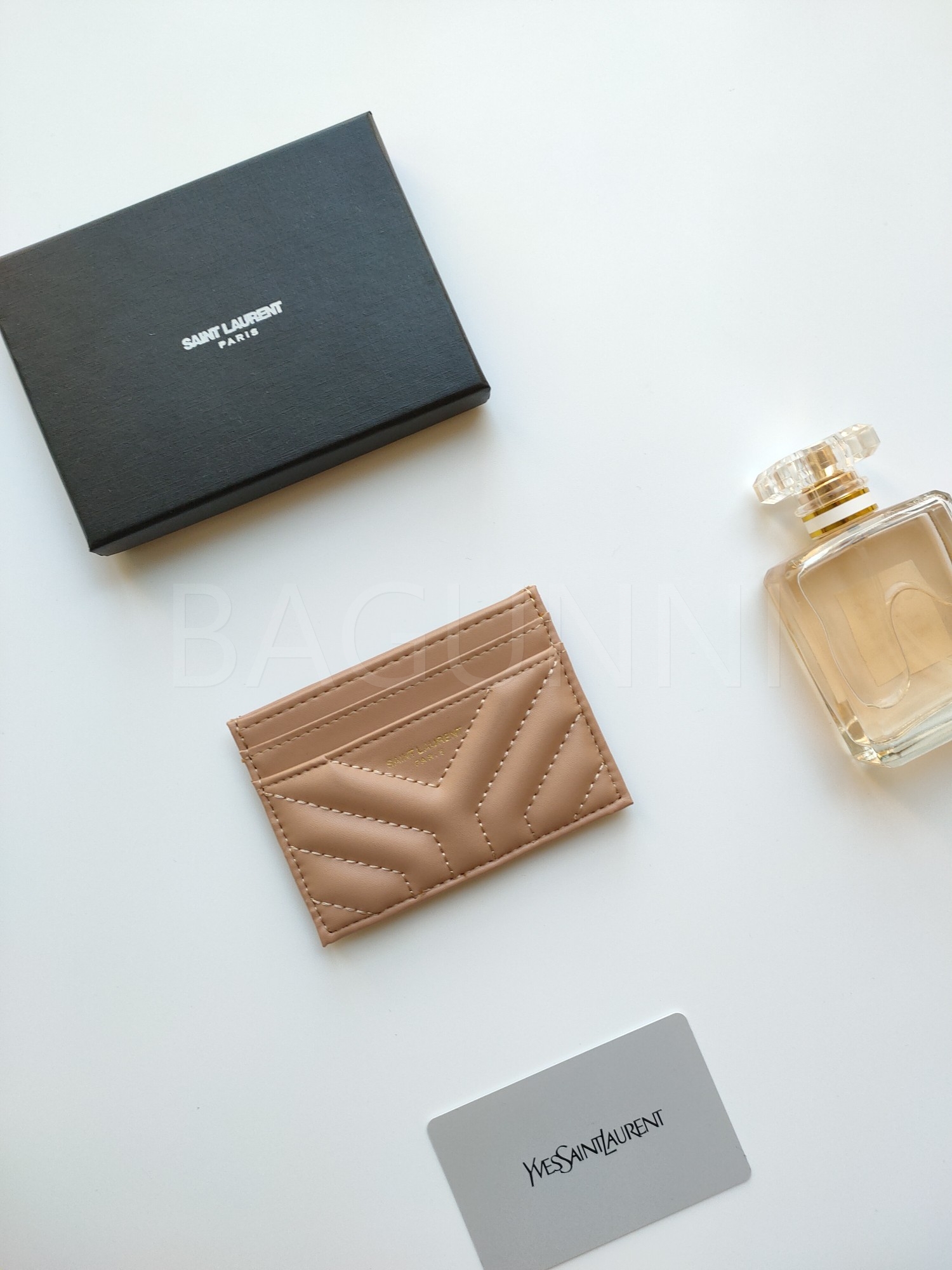 카프스킨의 질감이 돋보이는 YSL 플랩 카드지갑입니다.