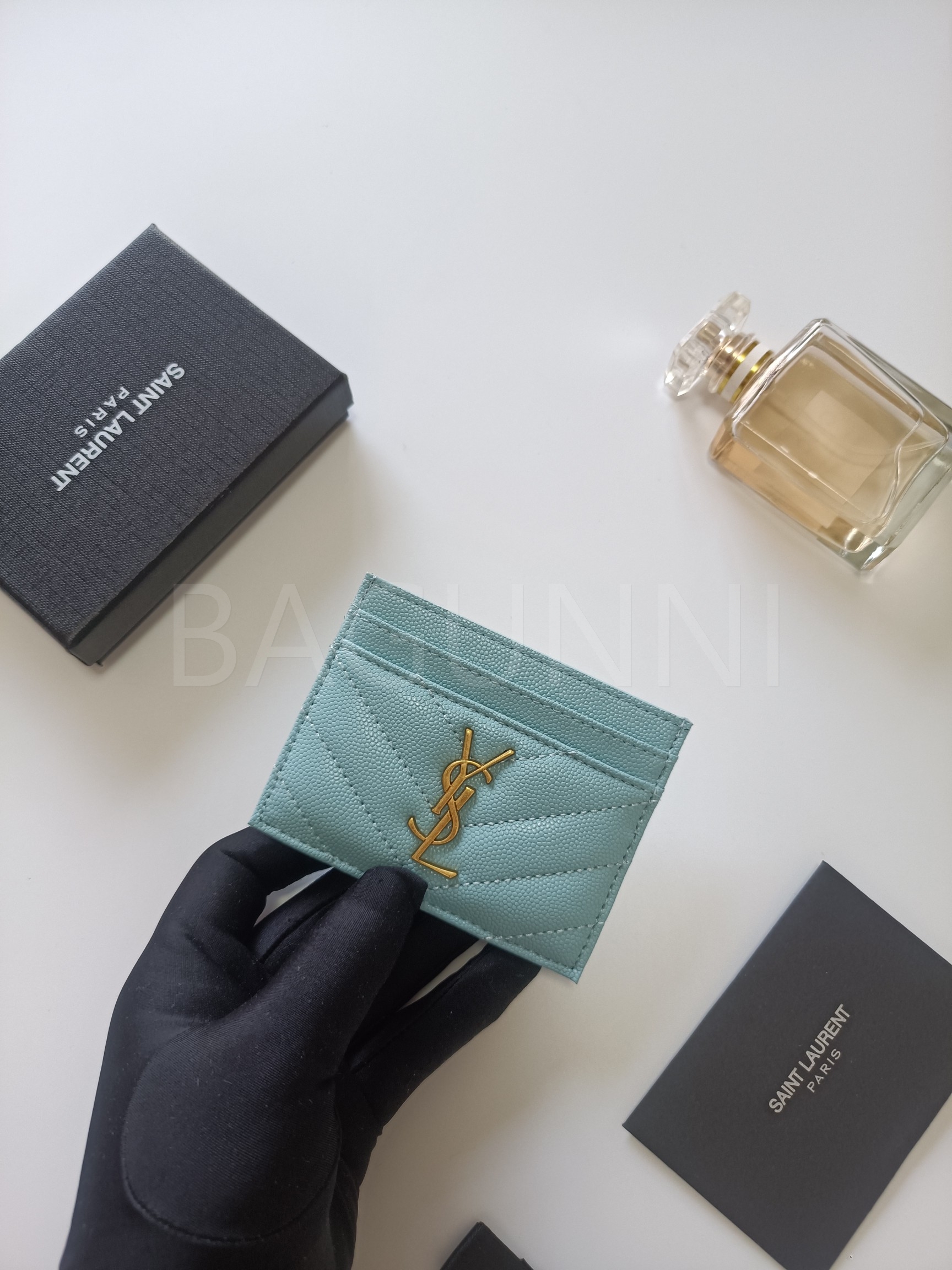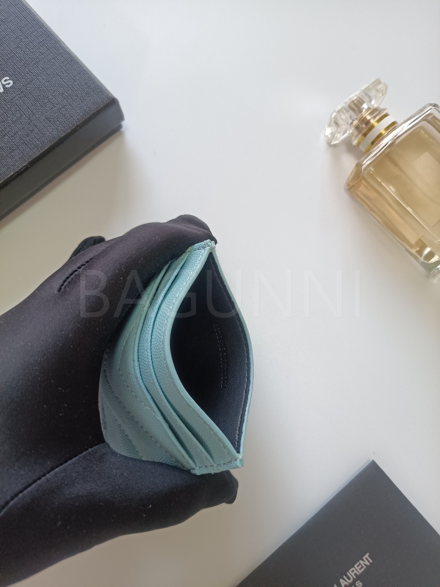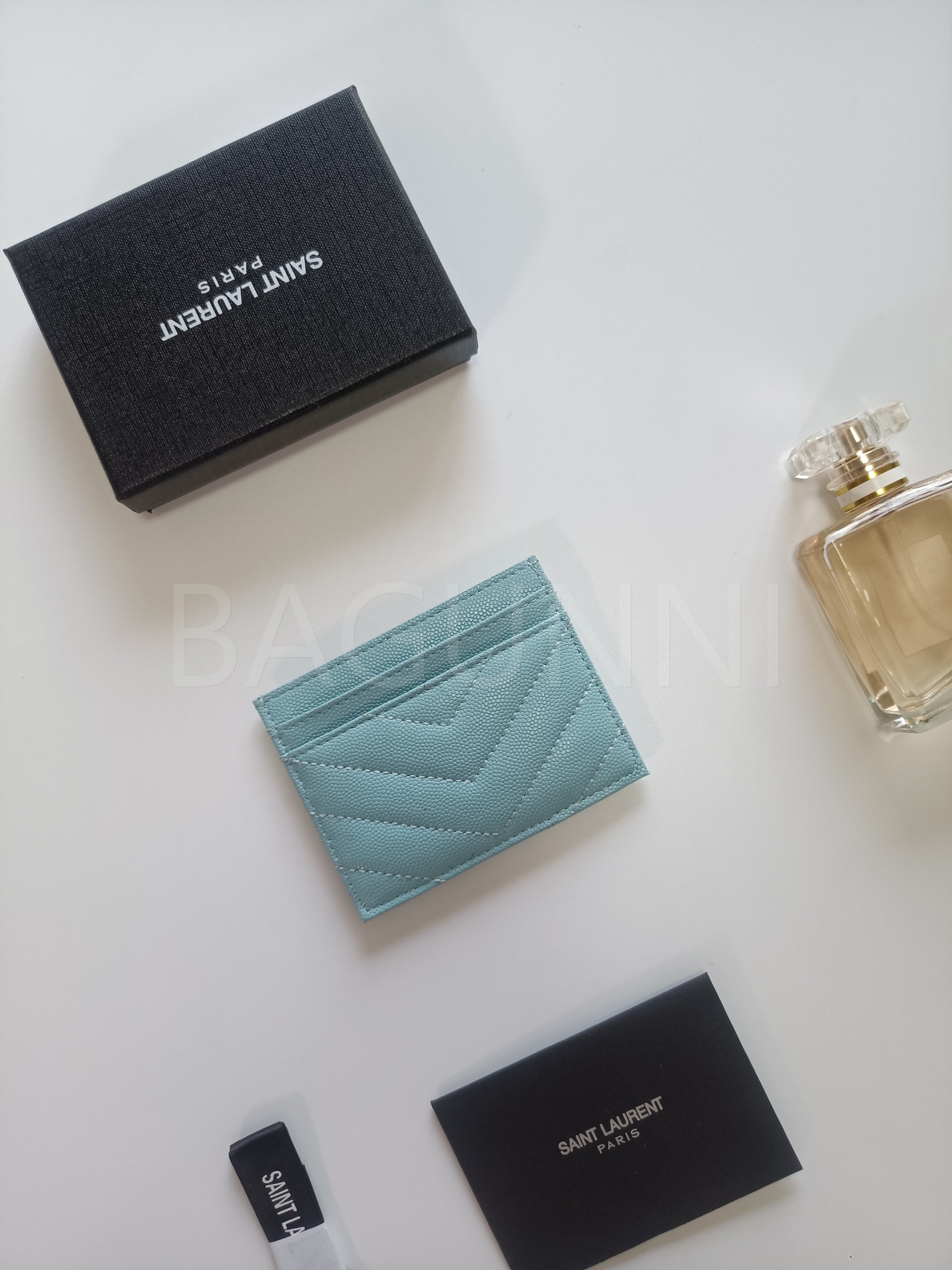 카프스킨의 질감이 돋보이는 YSL 플랩 카드지갑입니다.