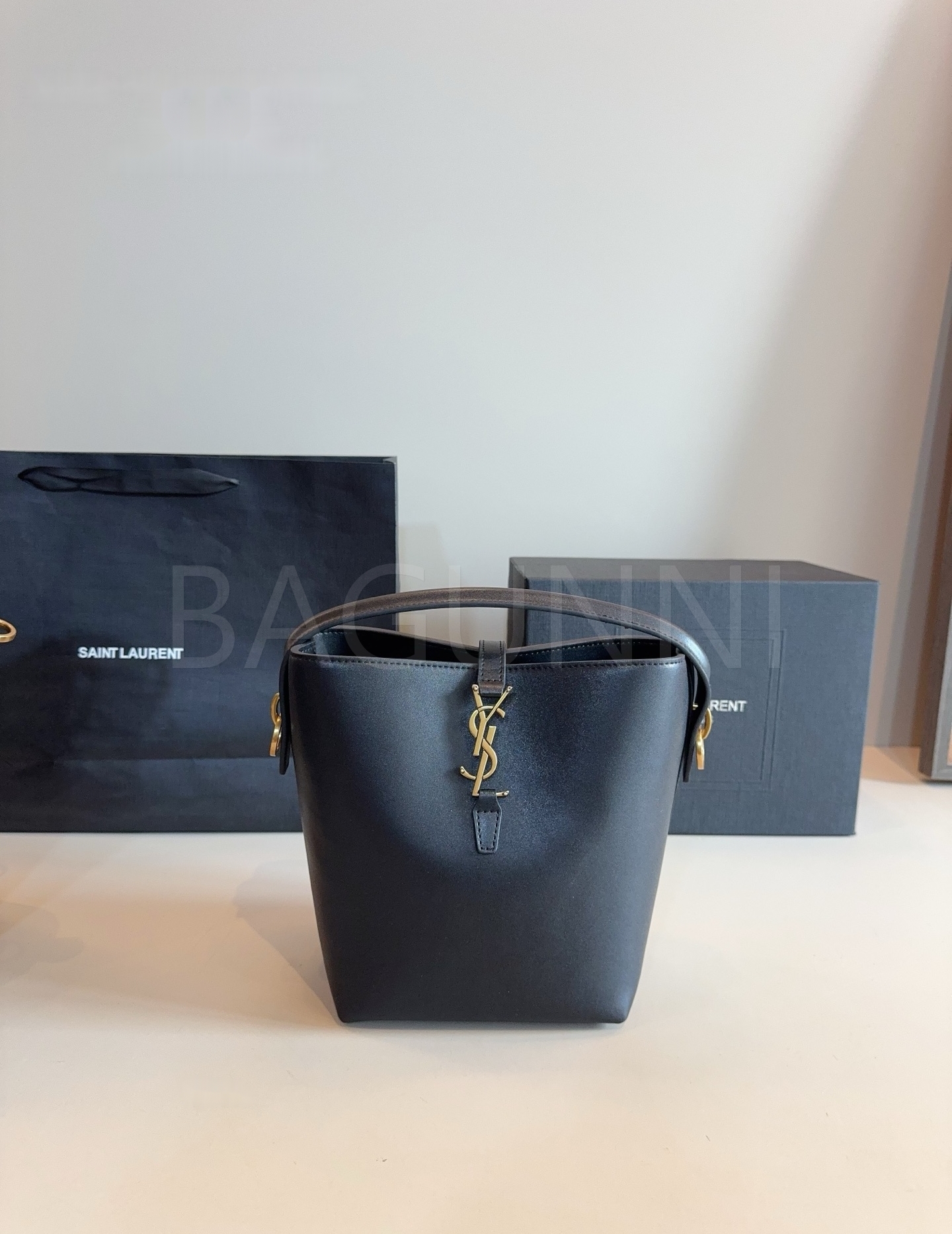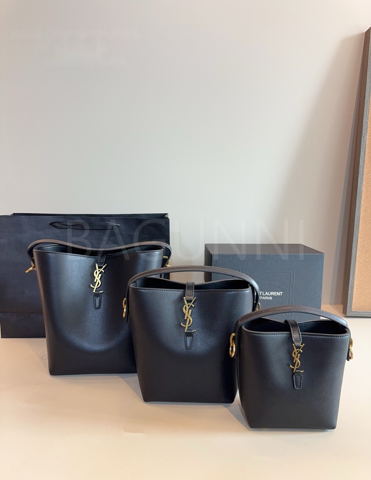 YSL 로고 버킷백입니다. 브랜드 특유의 분위기를 편하게 즐기기 좋습니다.