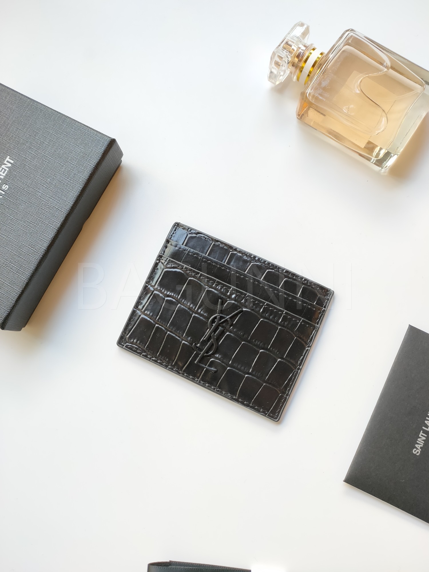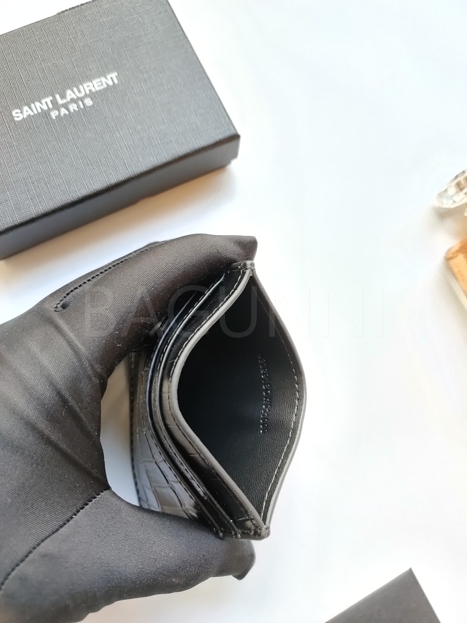 카프스킨의 질감이 돋보이는 YSL 플랩 카드지갑입니다.