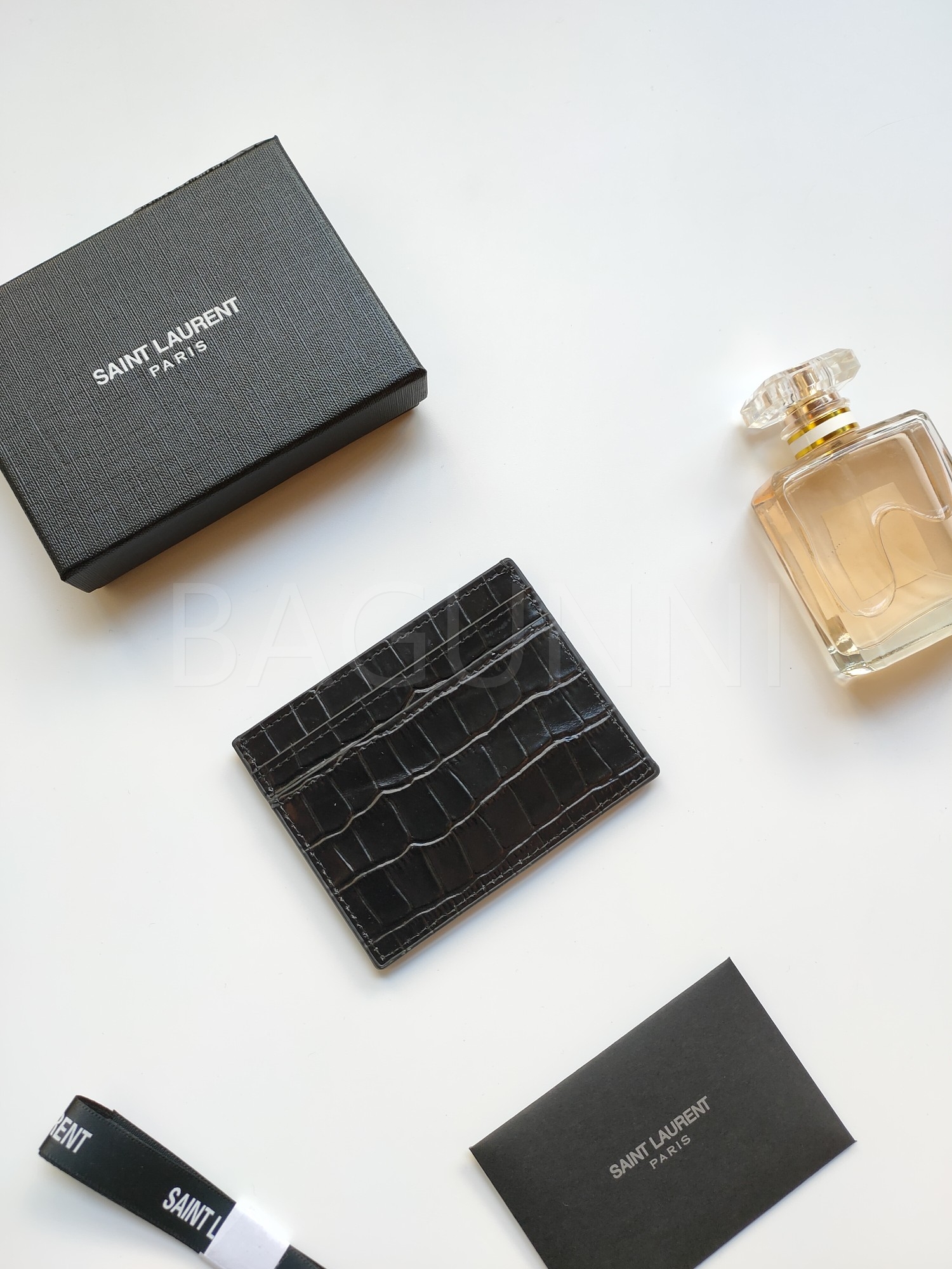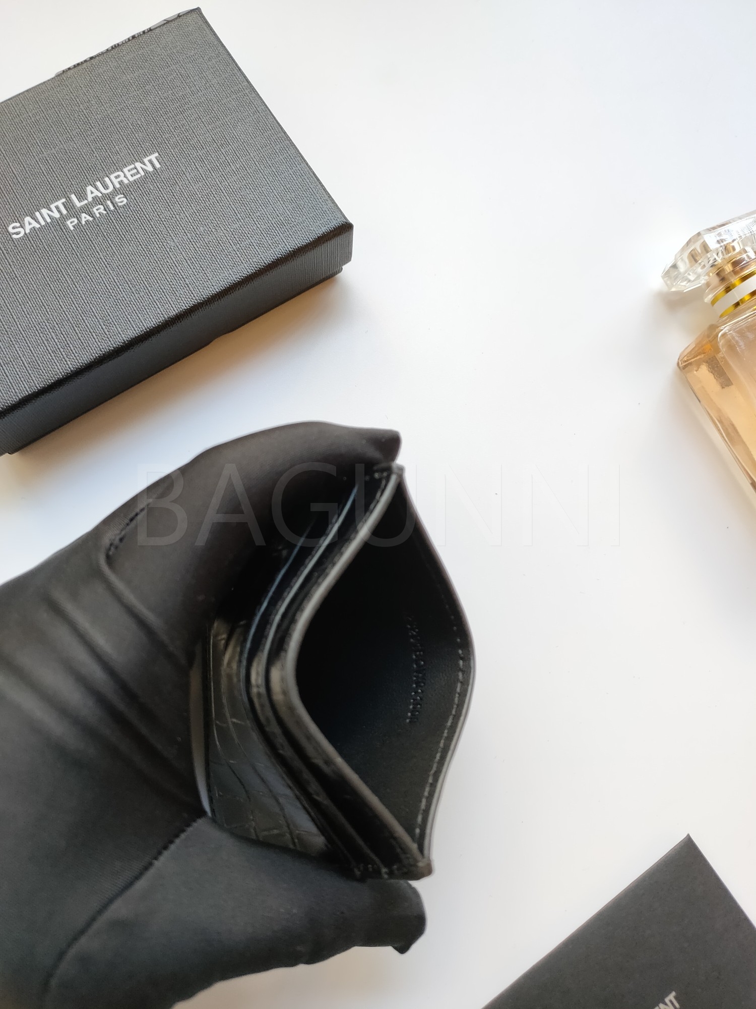 카프스킨의 질감이 돋보이는 YSL 플랩 카드지갑입니다.