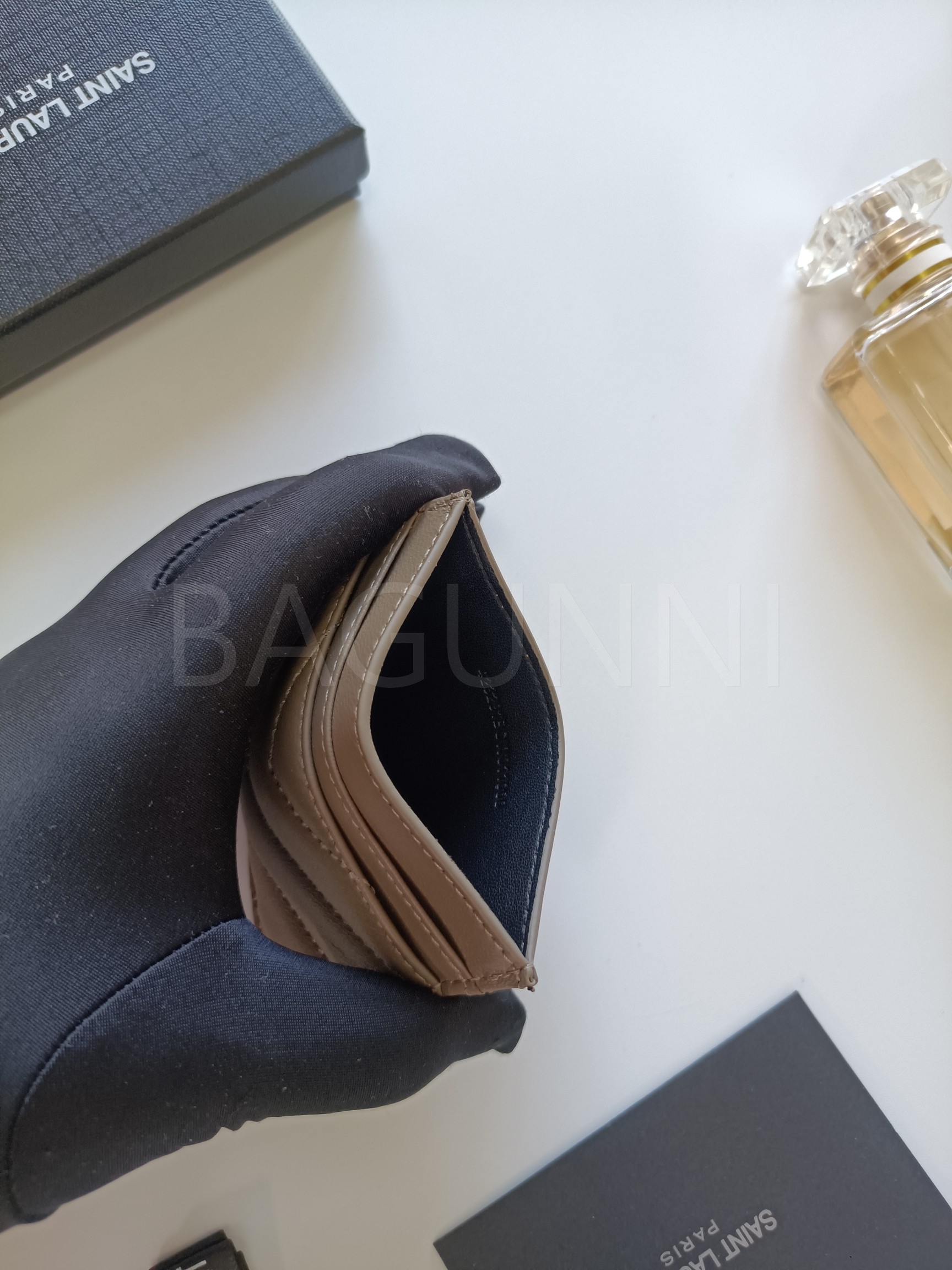 YSL 특유의 무드가 자연스럽게 살아있는 플랩 카드지갑입니다.