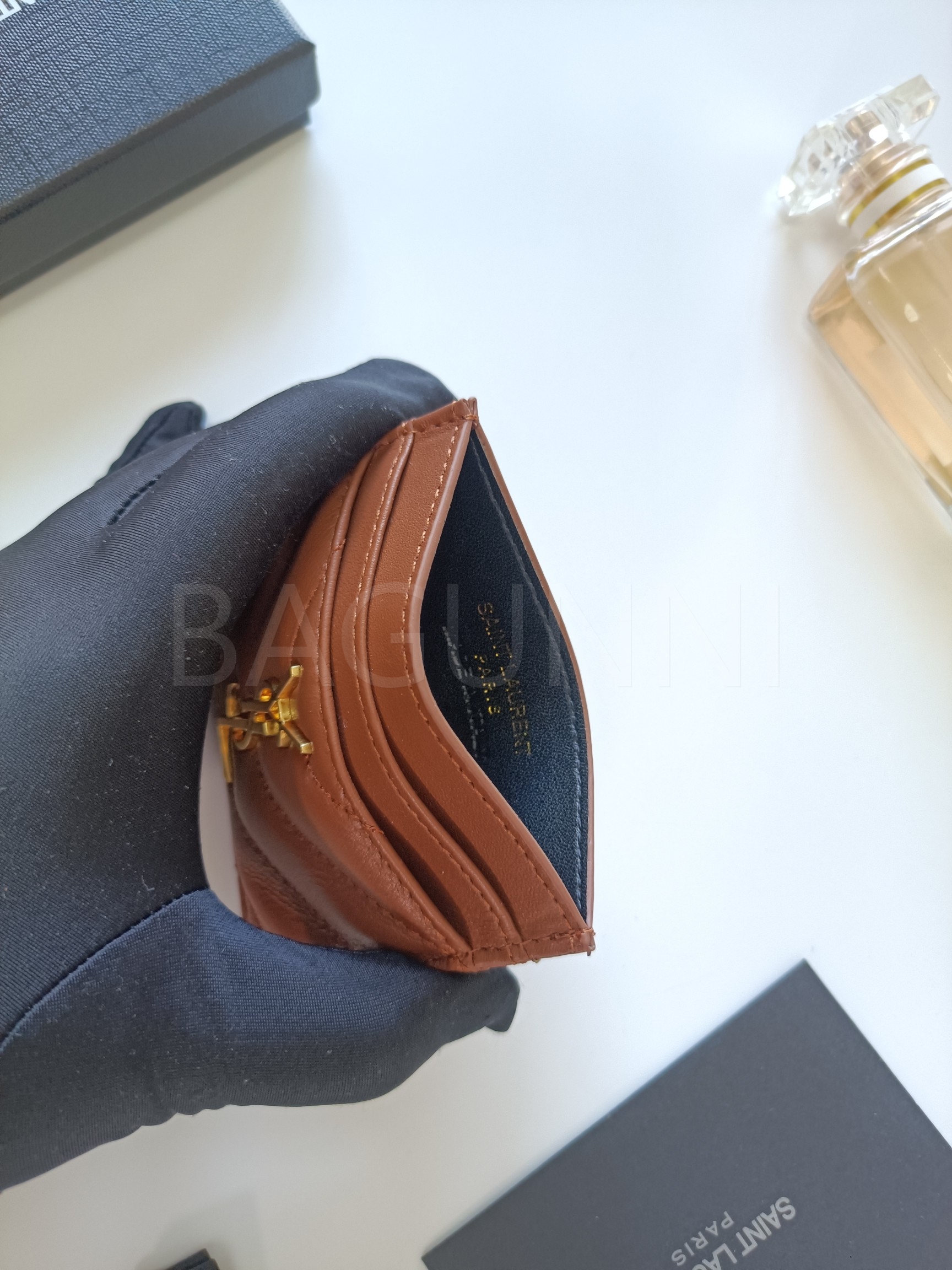 YSL 특유의 무드가 자연스럽게 살아있는 플랩 카드지갑입니다.