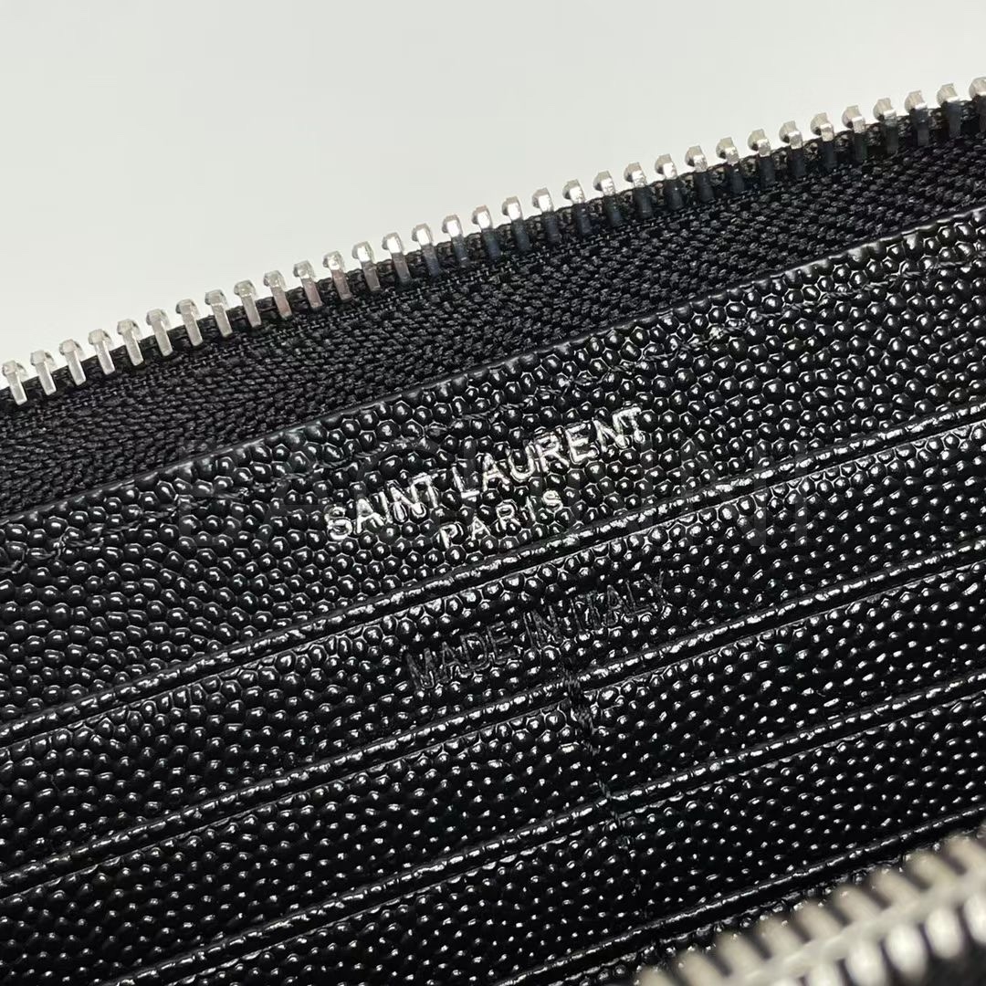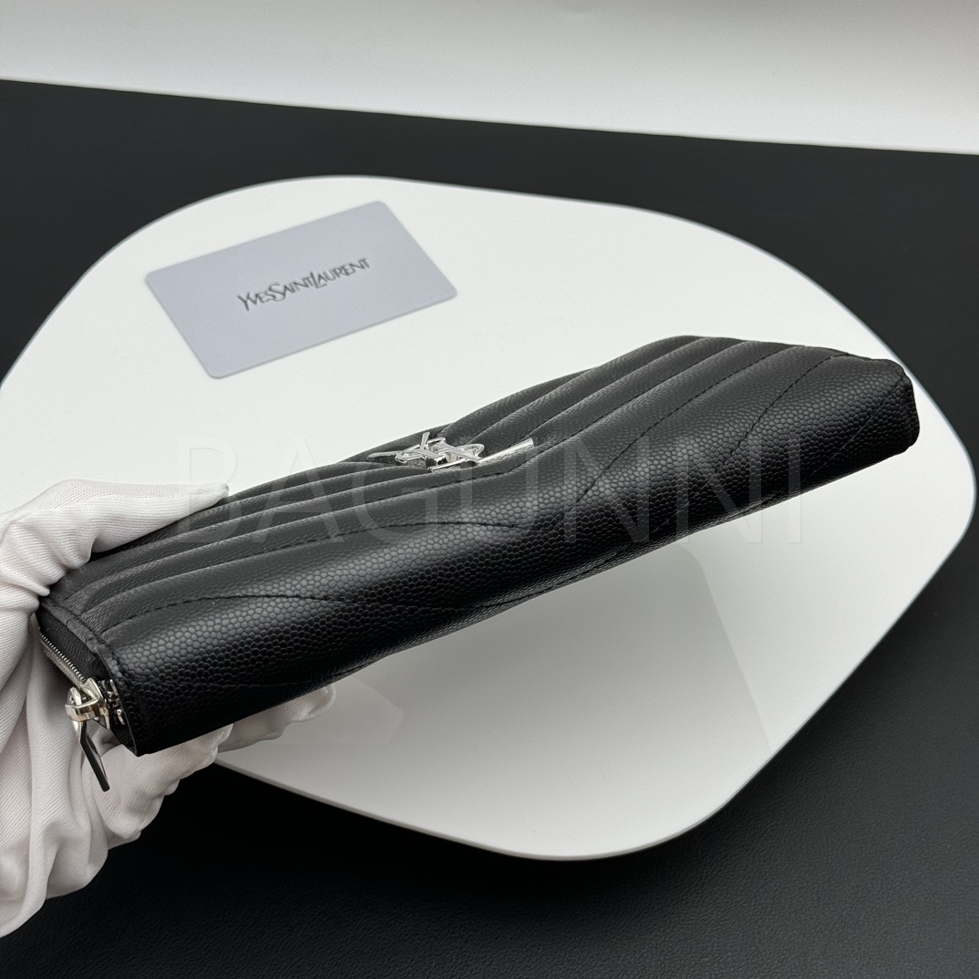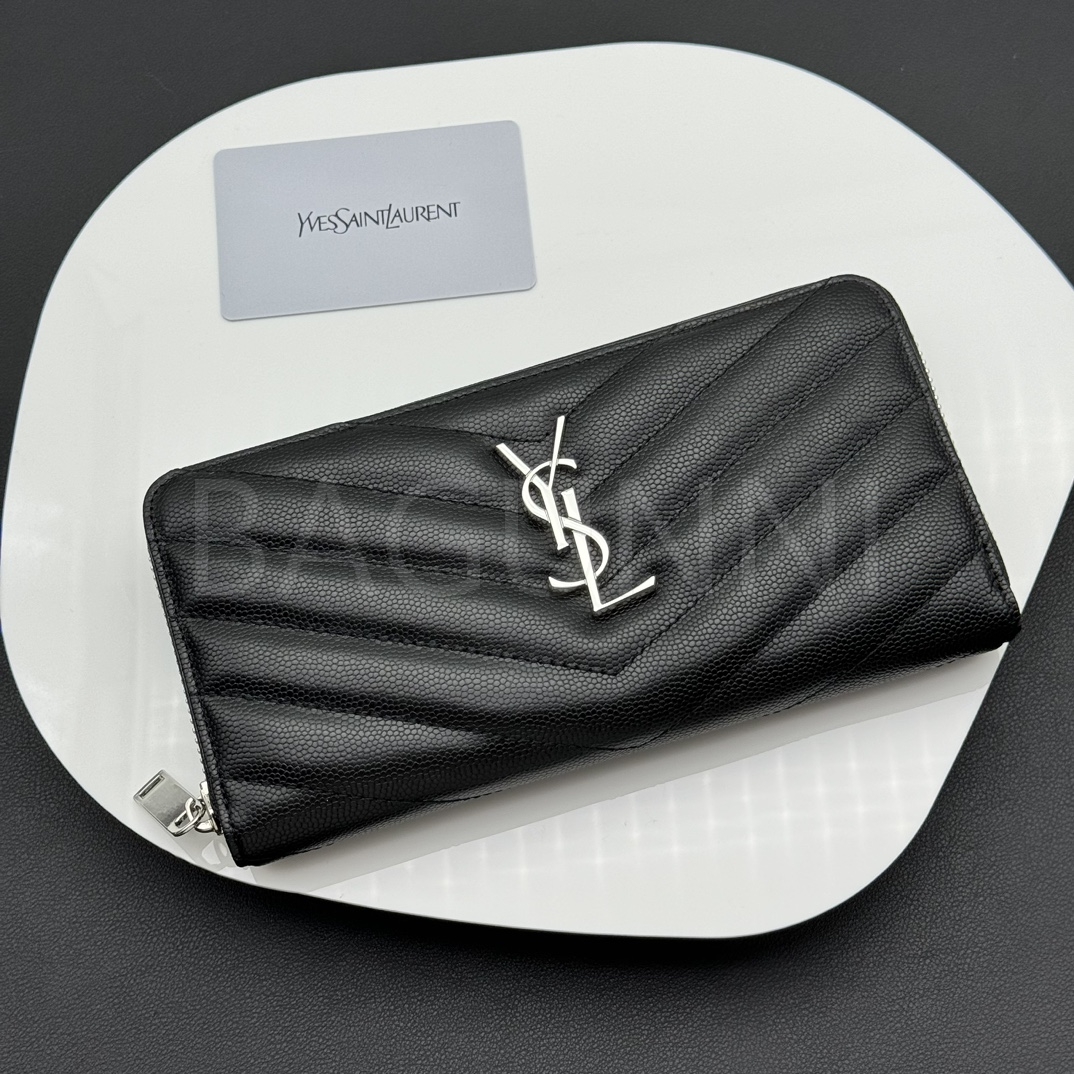 그레인 레더의 질감이 돋보이는 YSL 지갑입니다.