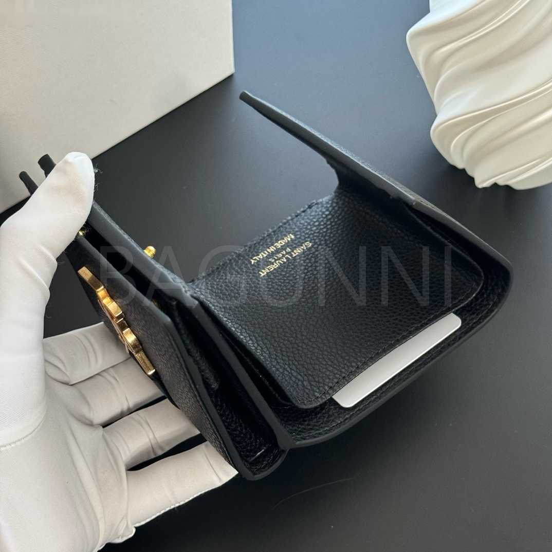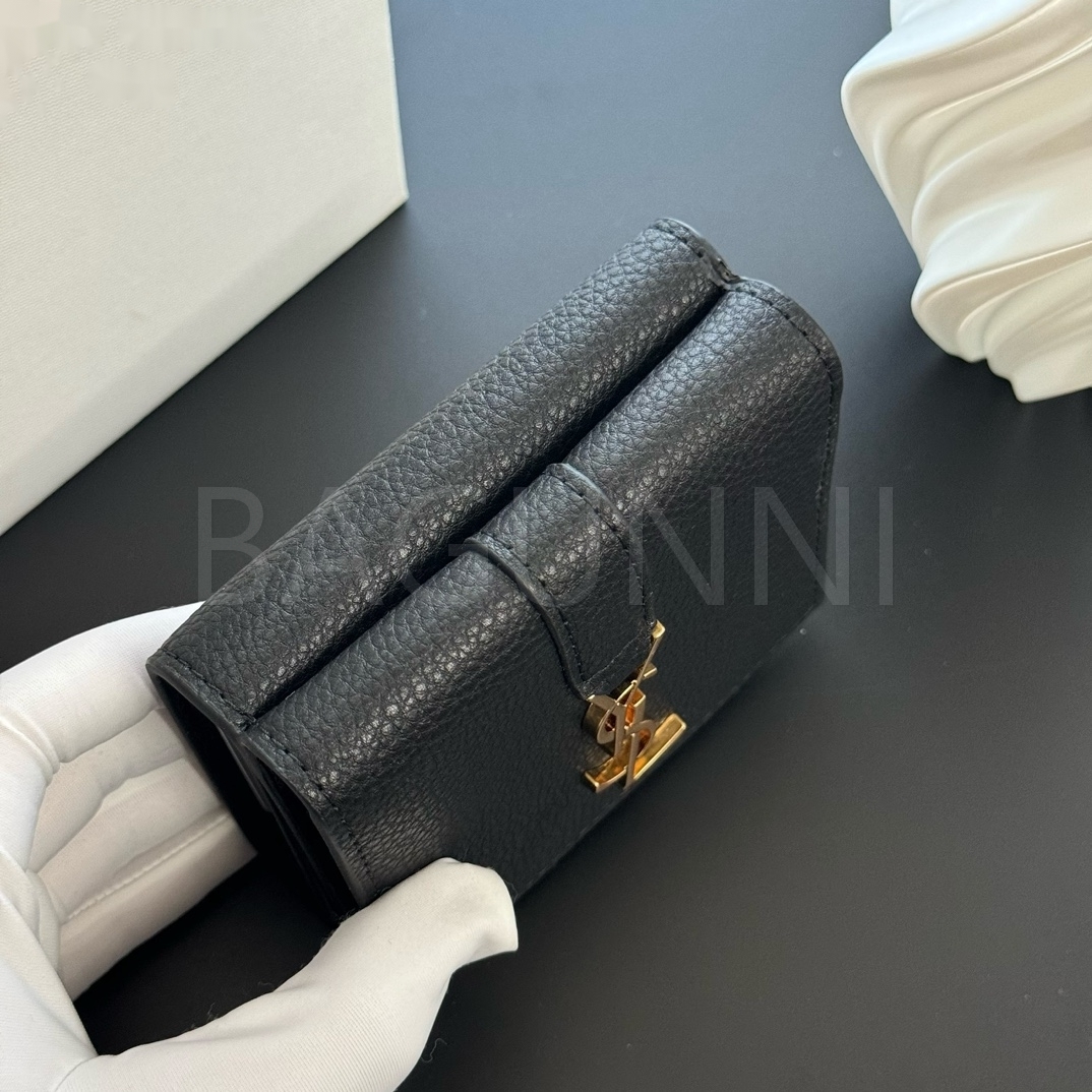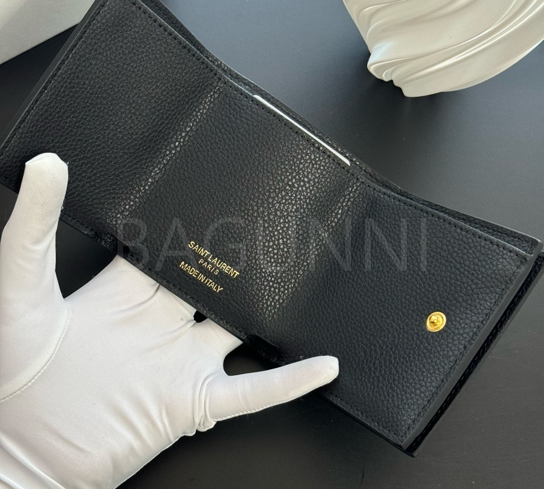 YSL 특유의 무드가 자연스럽게 살아있는 트리폴드 반지갑입니다.