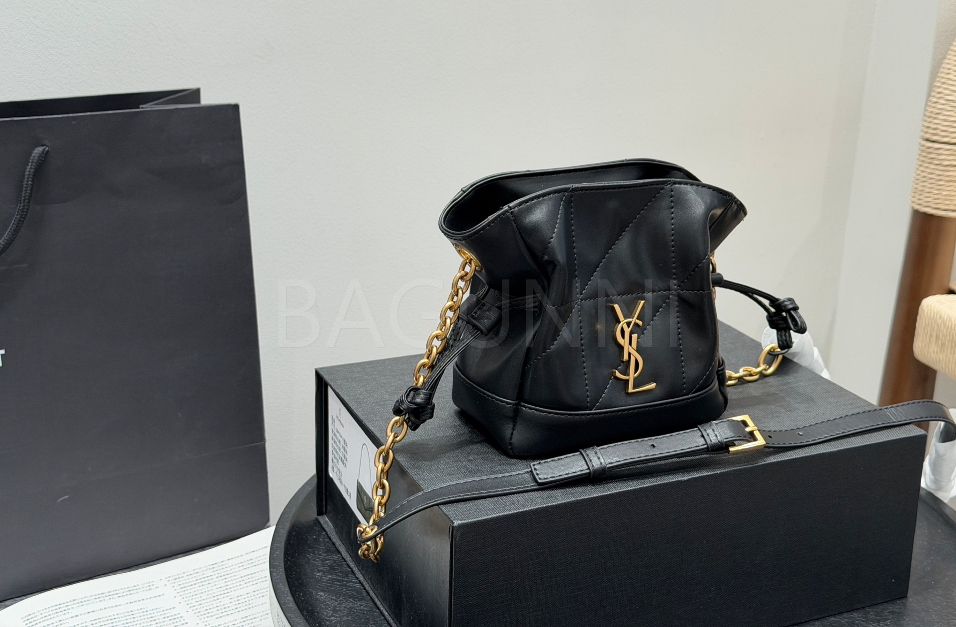YSL 제이미 드로스트링 버킷 백은 세련된 실루엣을 담은 아이템입니다.