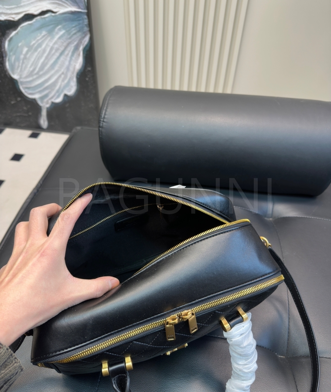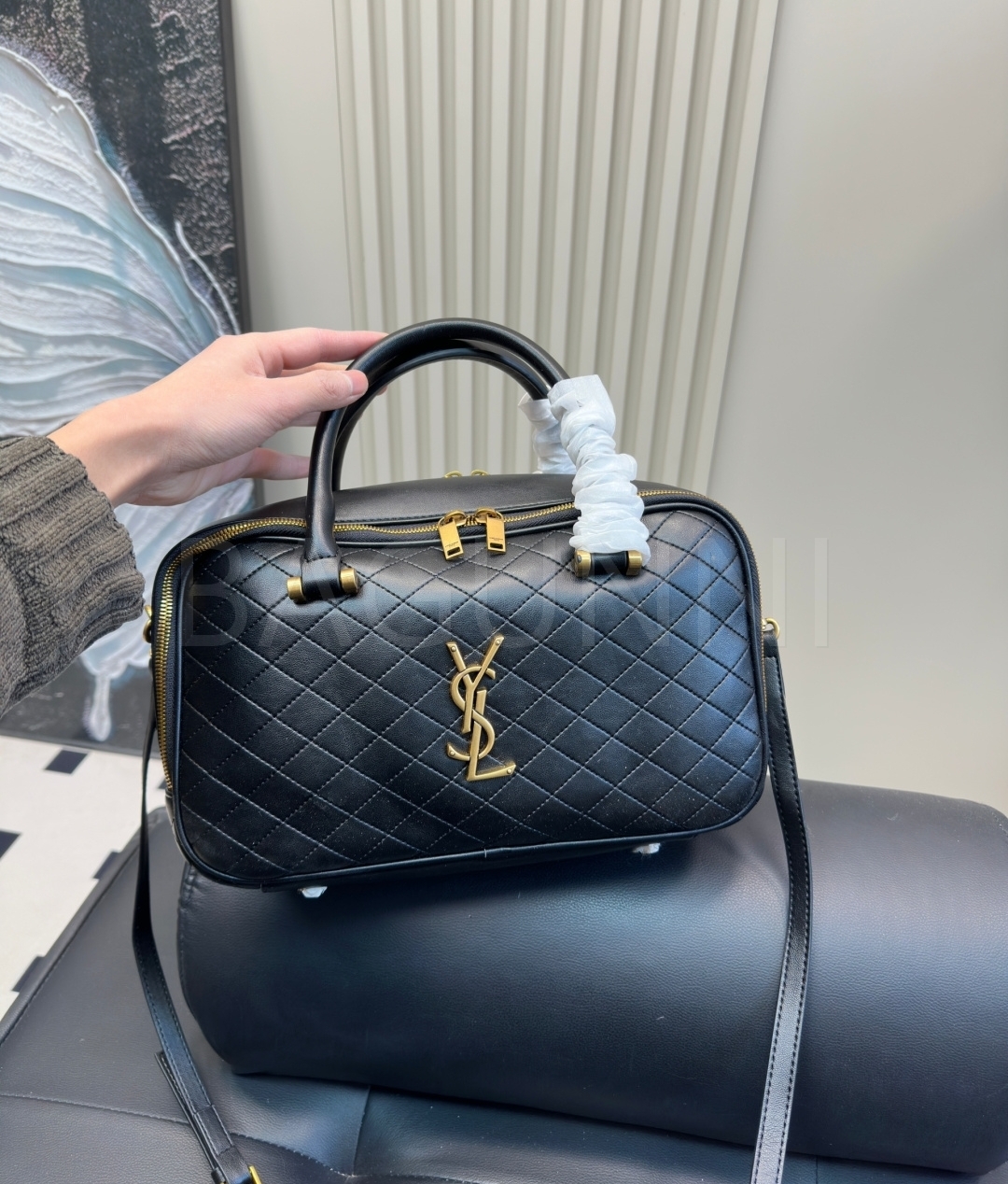 YSL 로고 볼링백입니다. 브랜드 특유의 분위기를 편하게 즐기기 좋습니다.