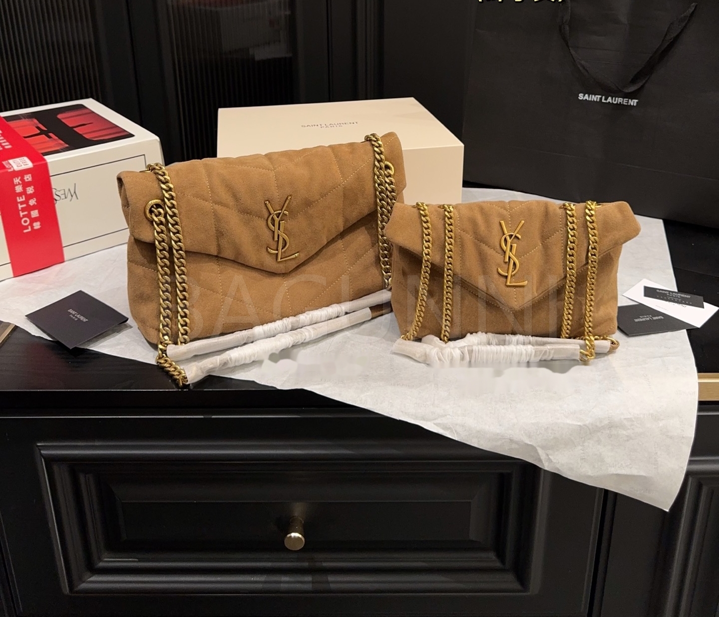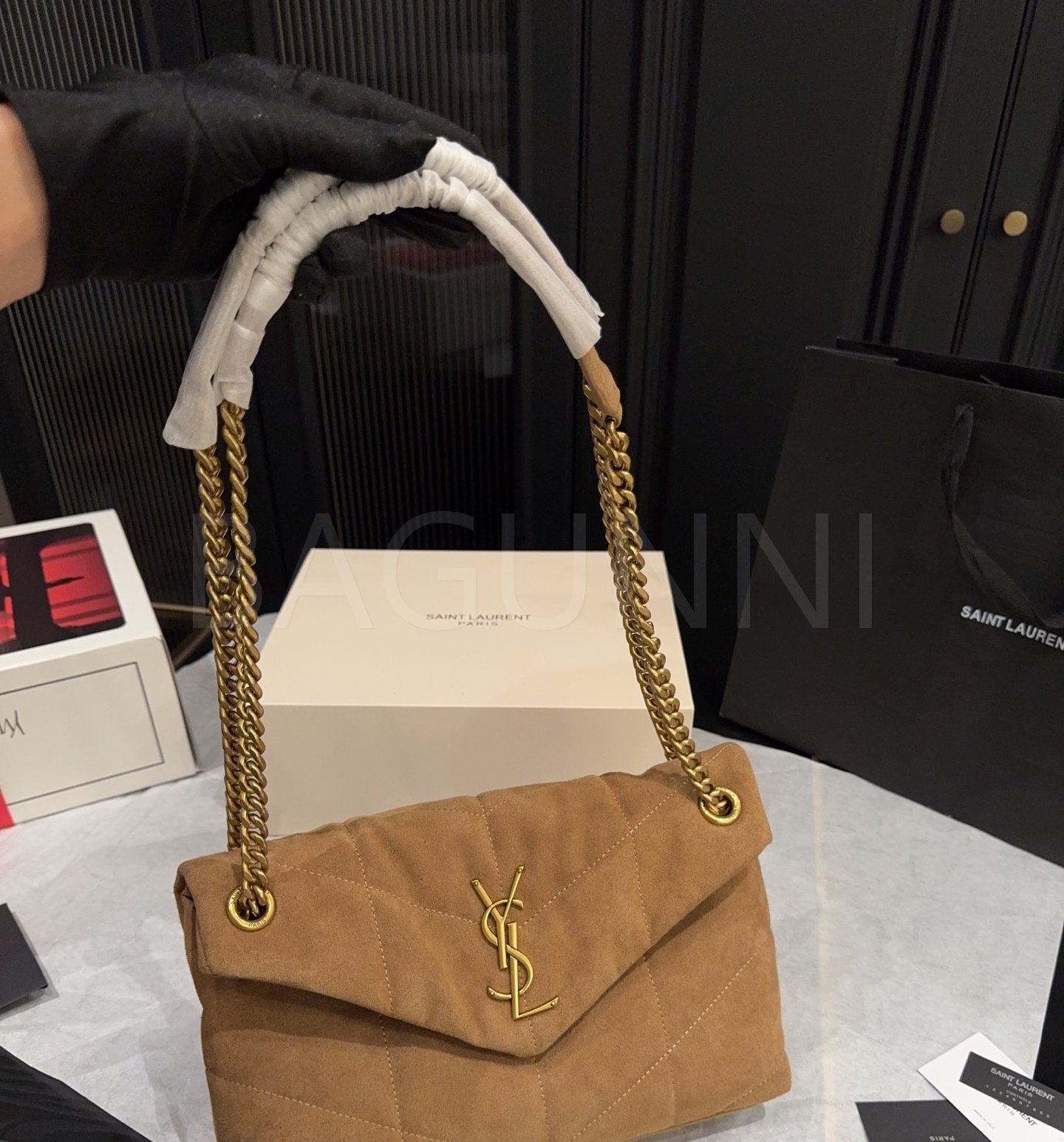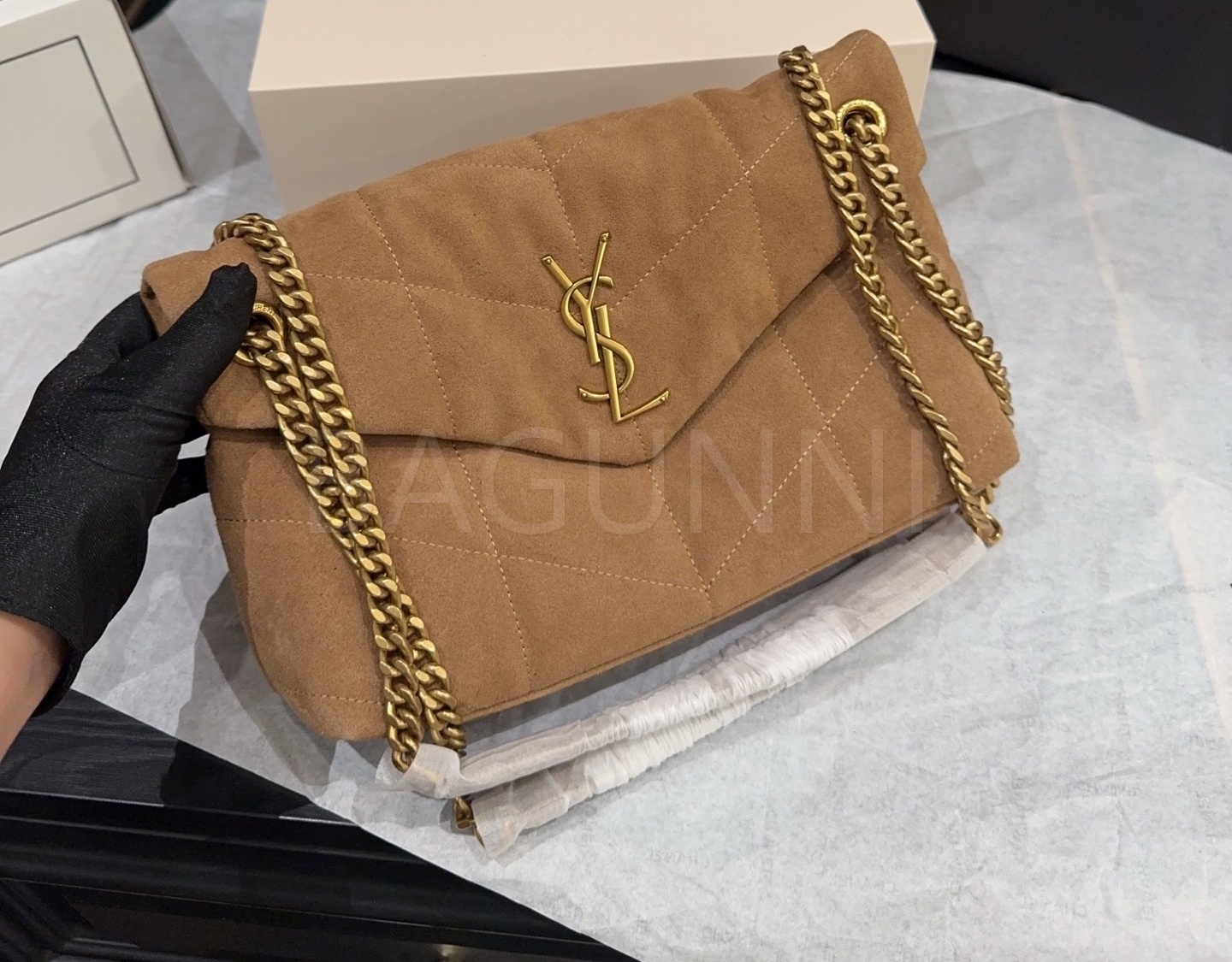 YSL 빅 로고 체인백입니다. 램스킨 특유의 질감이 자연스럽게 살아 있으며 골드 톤이 어우러져 브랜드 특유의 분위기를 편하게 즐기기 좋습니다.