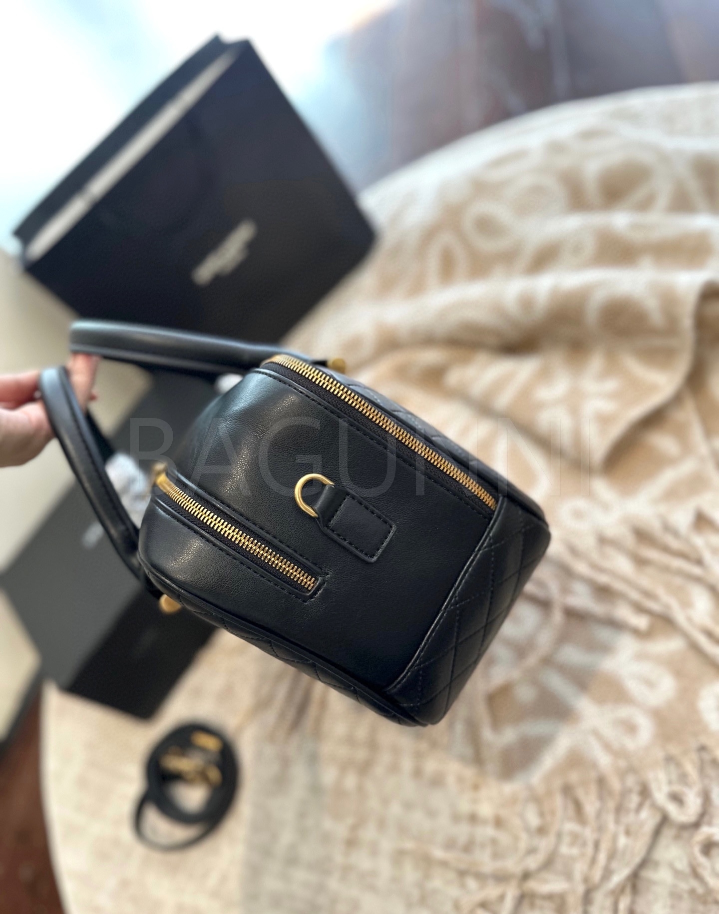 YSL 로고 바니티백입니다. 브랜드 특유의 분위기를 편하게 즐기기 좋습니다.