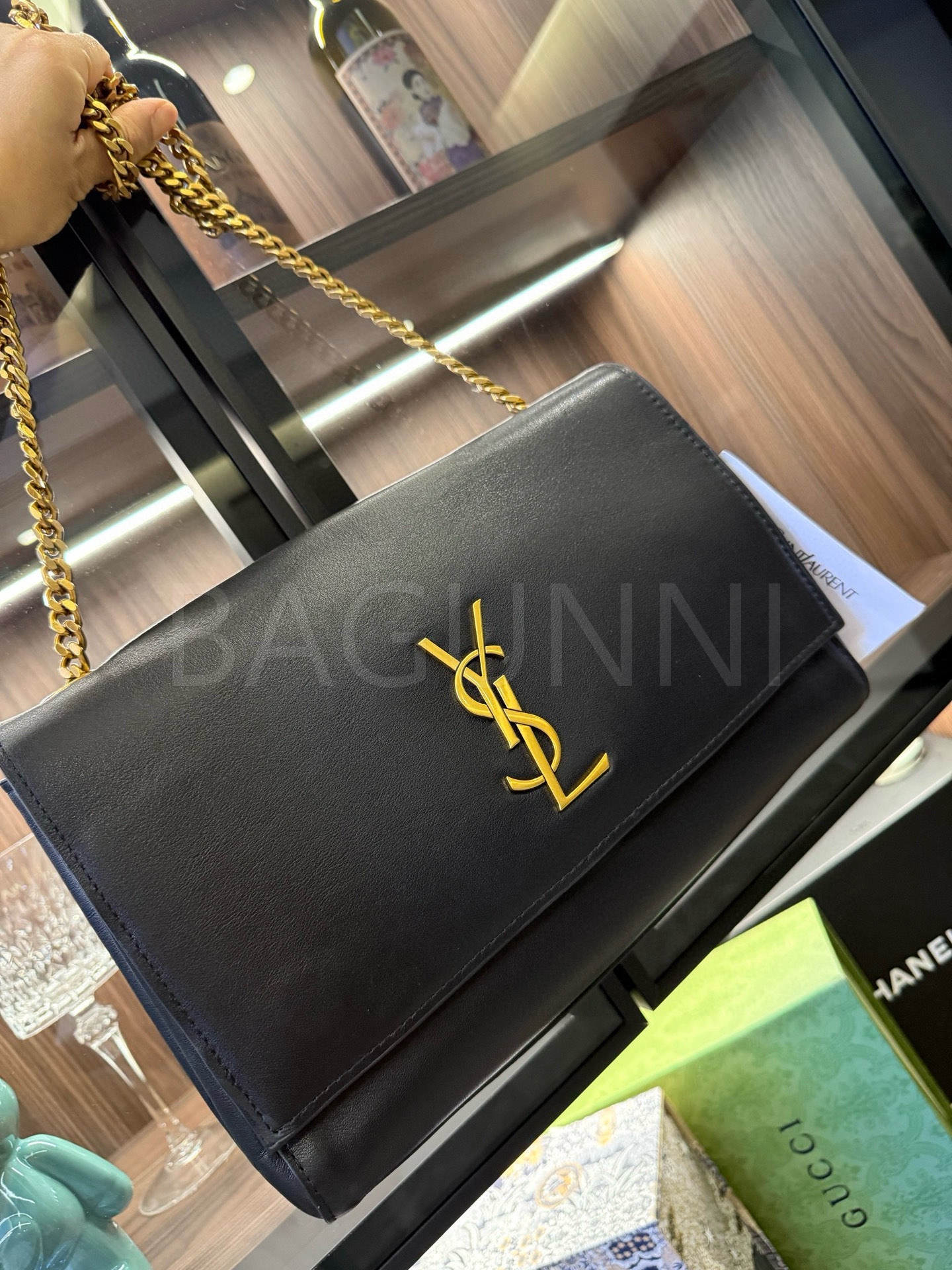 YSL 케이트 체인백입니다. 가죽 특유의 질감이 자연스럽게 살아 있으며 브랜드 특유의 분위기를 편하게 즐기기 좋습니다.