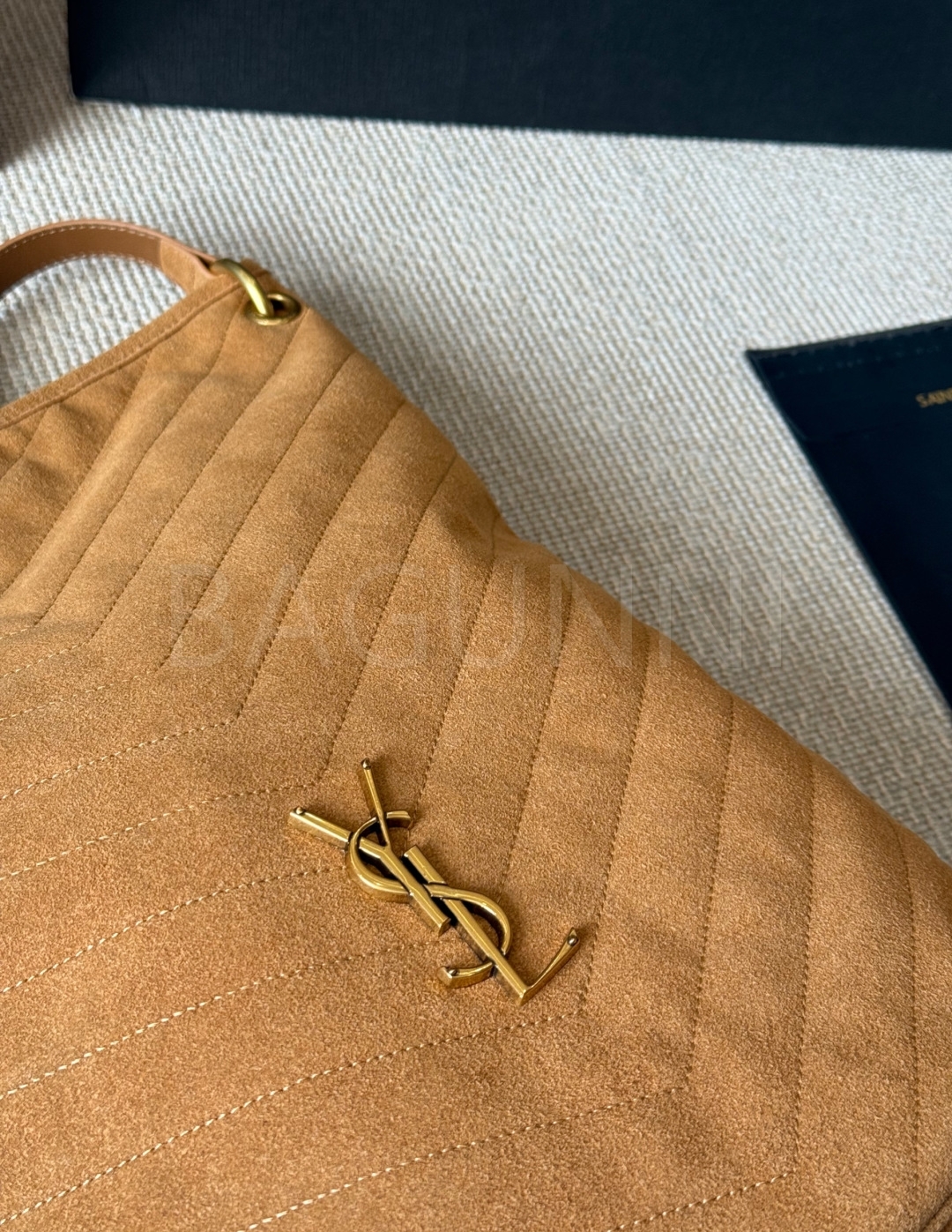 YSL 니키 버킷백입니다. 스웨이드 특유의 질감이 자연스럽게 살아 있으며 레드 톤이 어우러져 브랜드 특유의 분위기를 편하게 즐기기 좋습니다.