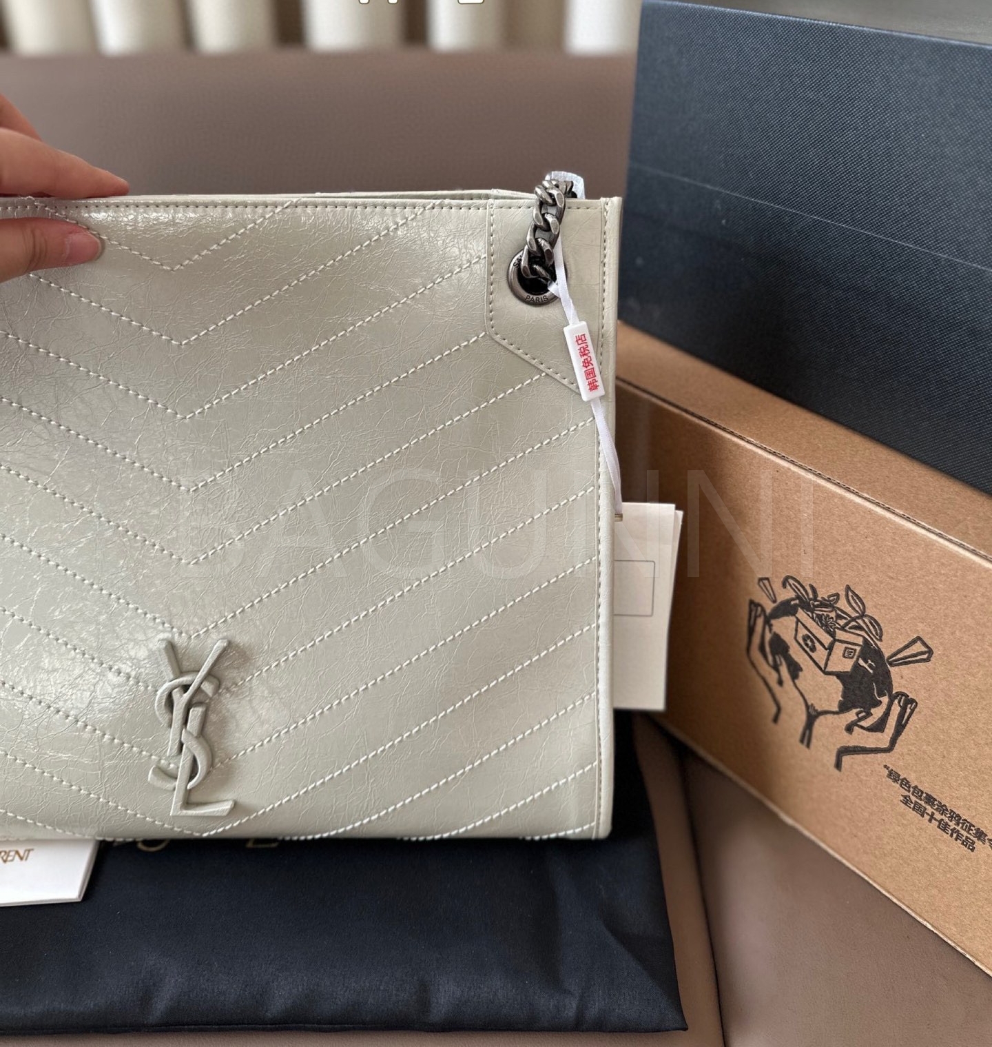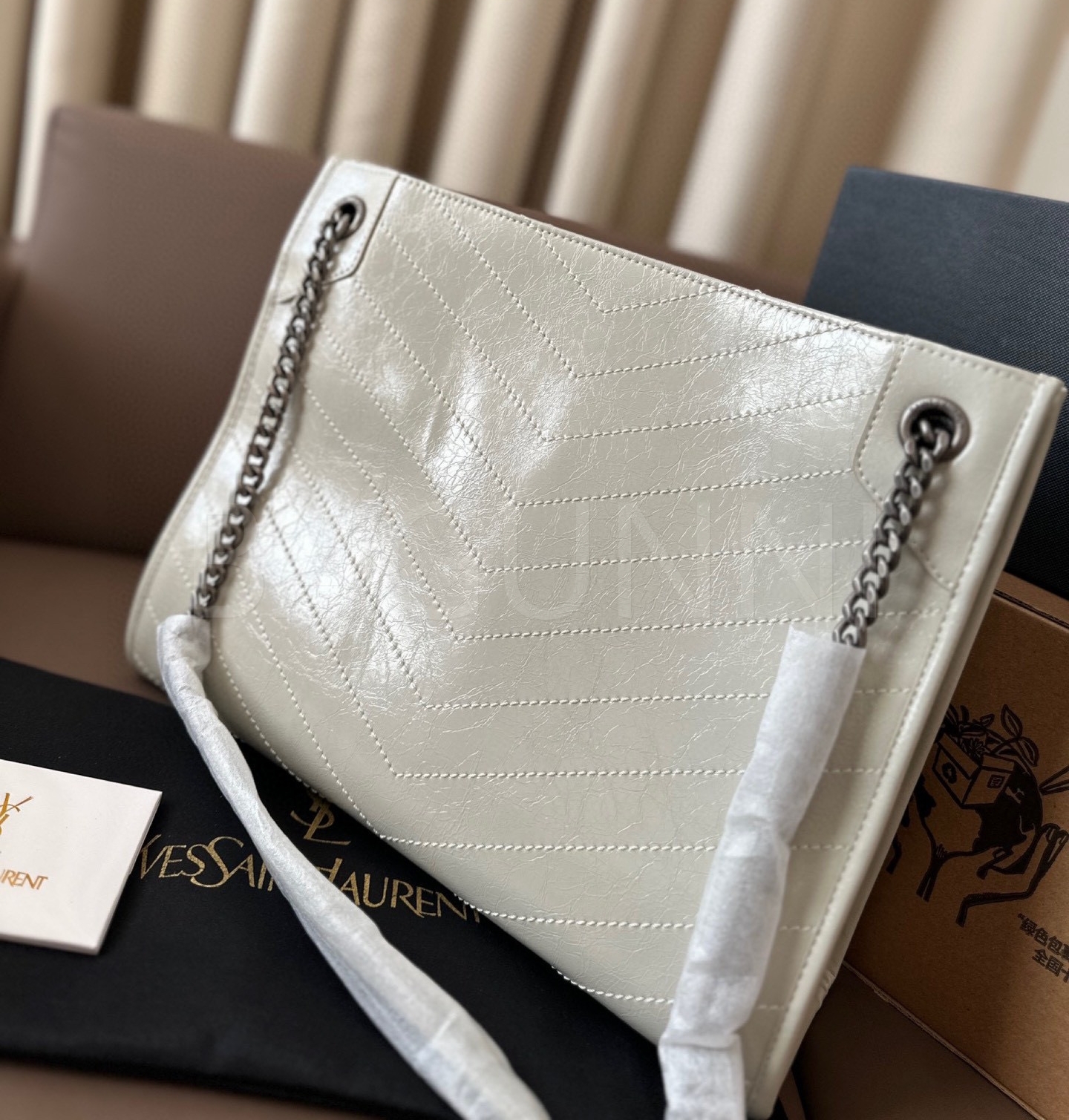 YSL 니키 숄더백입니다. 브랜드 특유의 분위기를 편하게 즐기기 좋습니다.