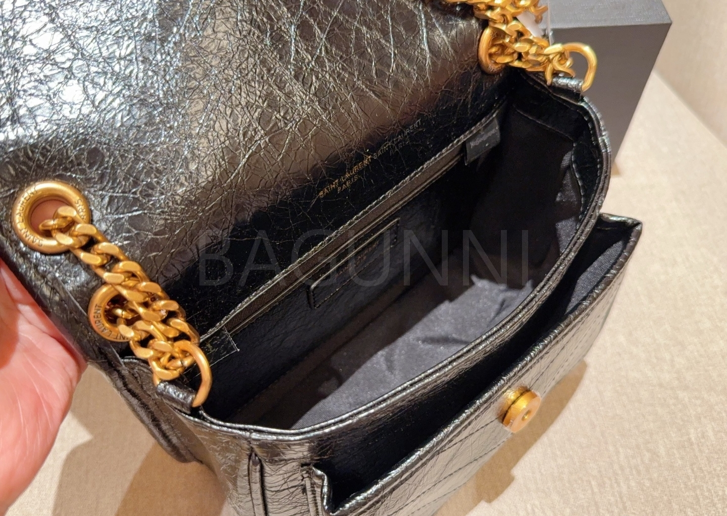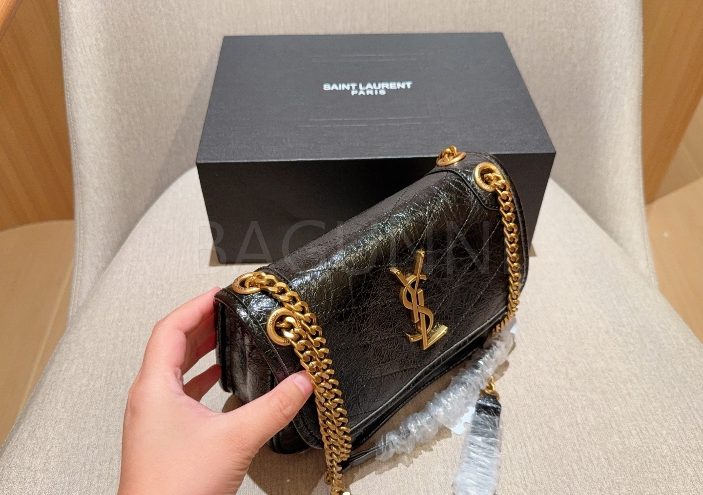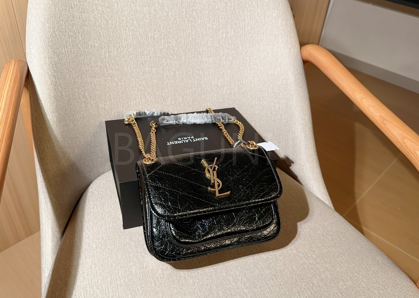 YSL 니키 숄더백입니다. 브랜드 특유의 분위기를 편하게 즐기기 좋습니다.