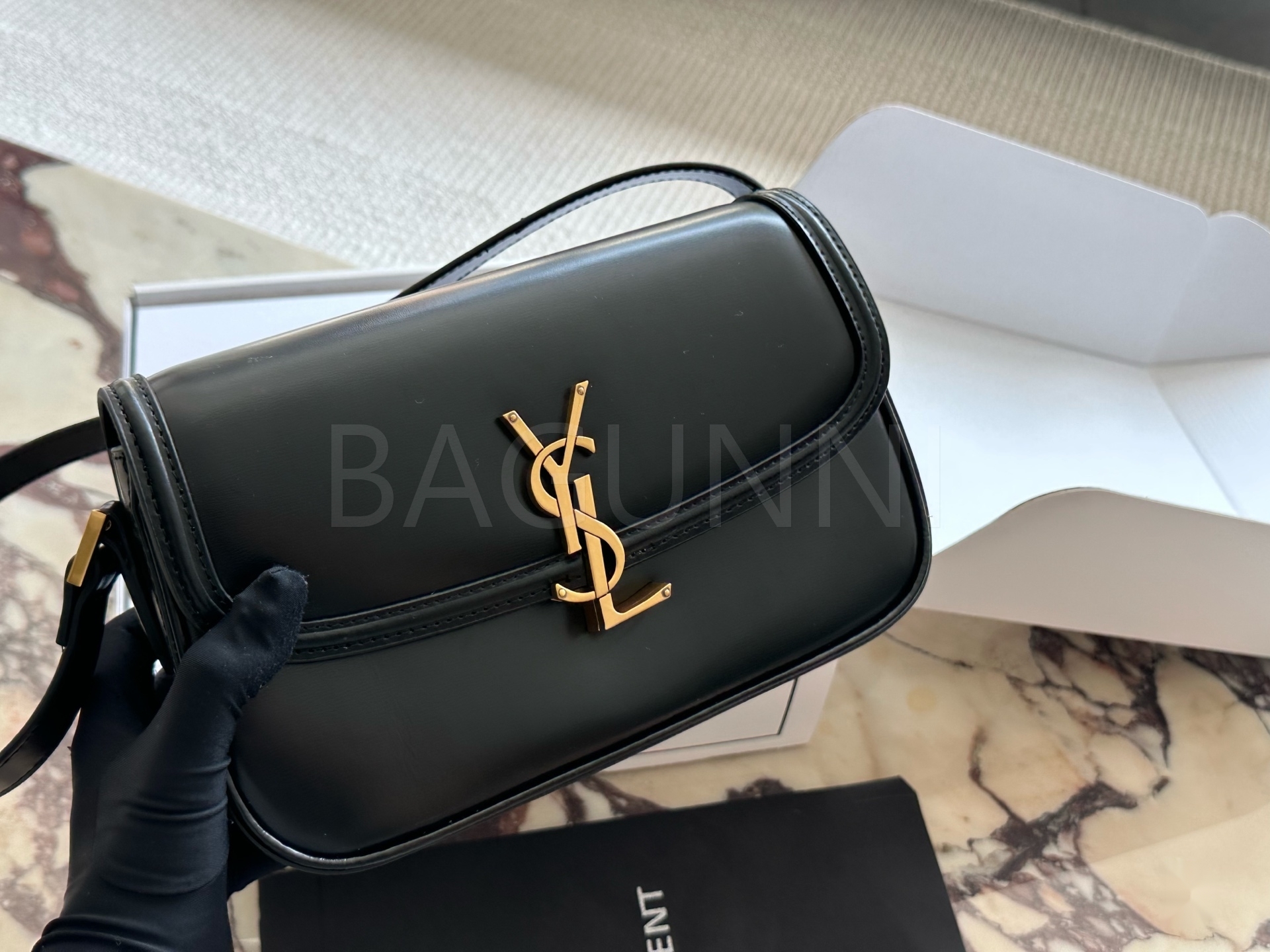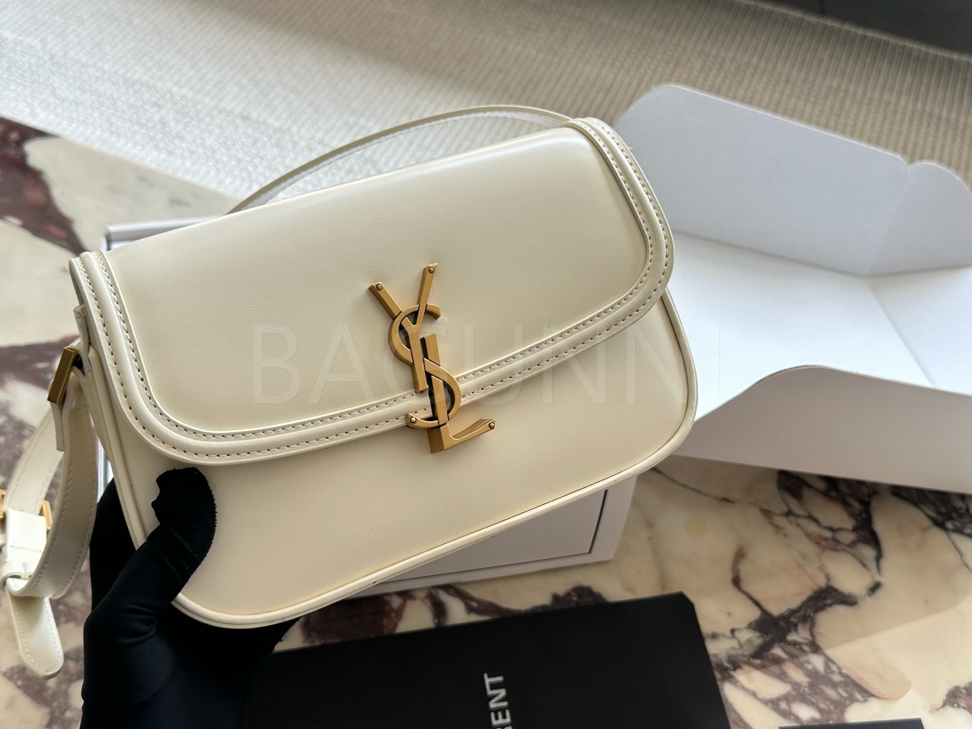 YSL 로고 카메라백입니다. 브랜드 특유의 분위기를 편하게 즐기기 좋습니다.